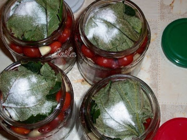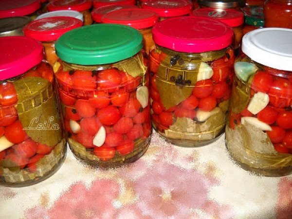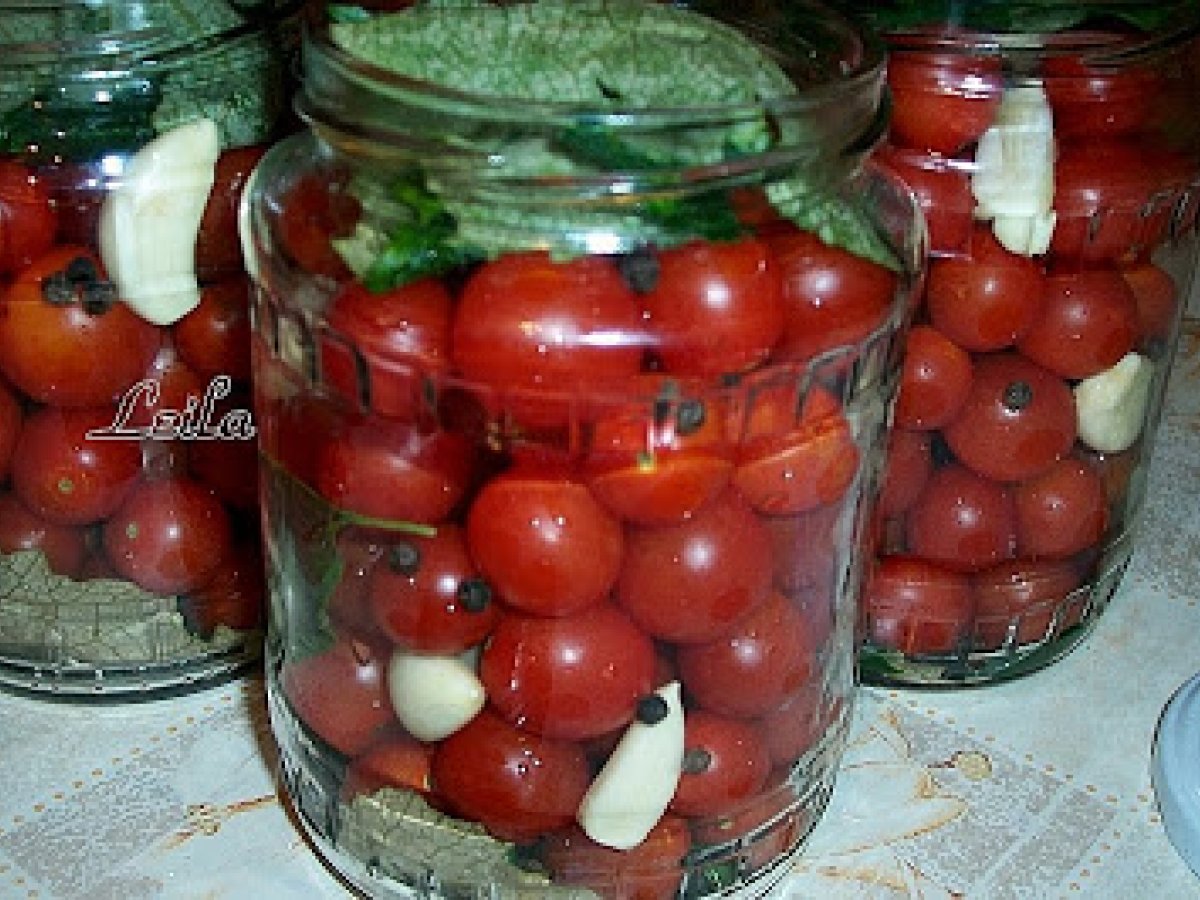 Rosii murate PrecedentulUrmătorul DesertFoarte ușor40 min Trimite unui prieten Printează pagina Adresează o întrebare autorului Postează o poză cu rețeta gătită de tine Ingrediente 4 2 kg rosii cherry coapte 2 capatani de usturoi 5-6 frunze de vita de vie circa 10 frunze de visin 2 linguri sare grunjoasa(fara iod) 200 ml otet alimentar de 9 grade boabe de piper negru 2 litri apa salicil (praf conservant) 6 linguri zahar