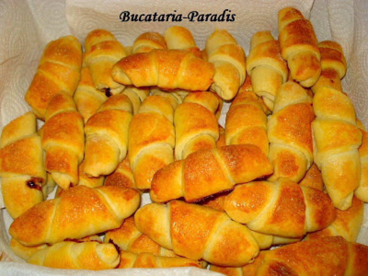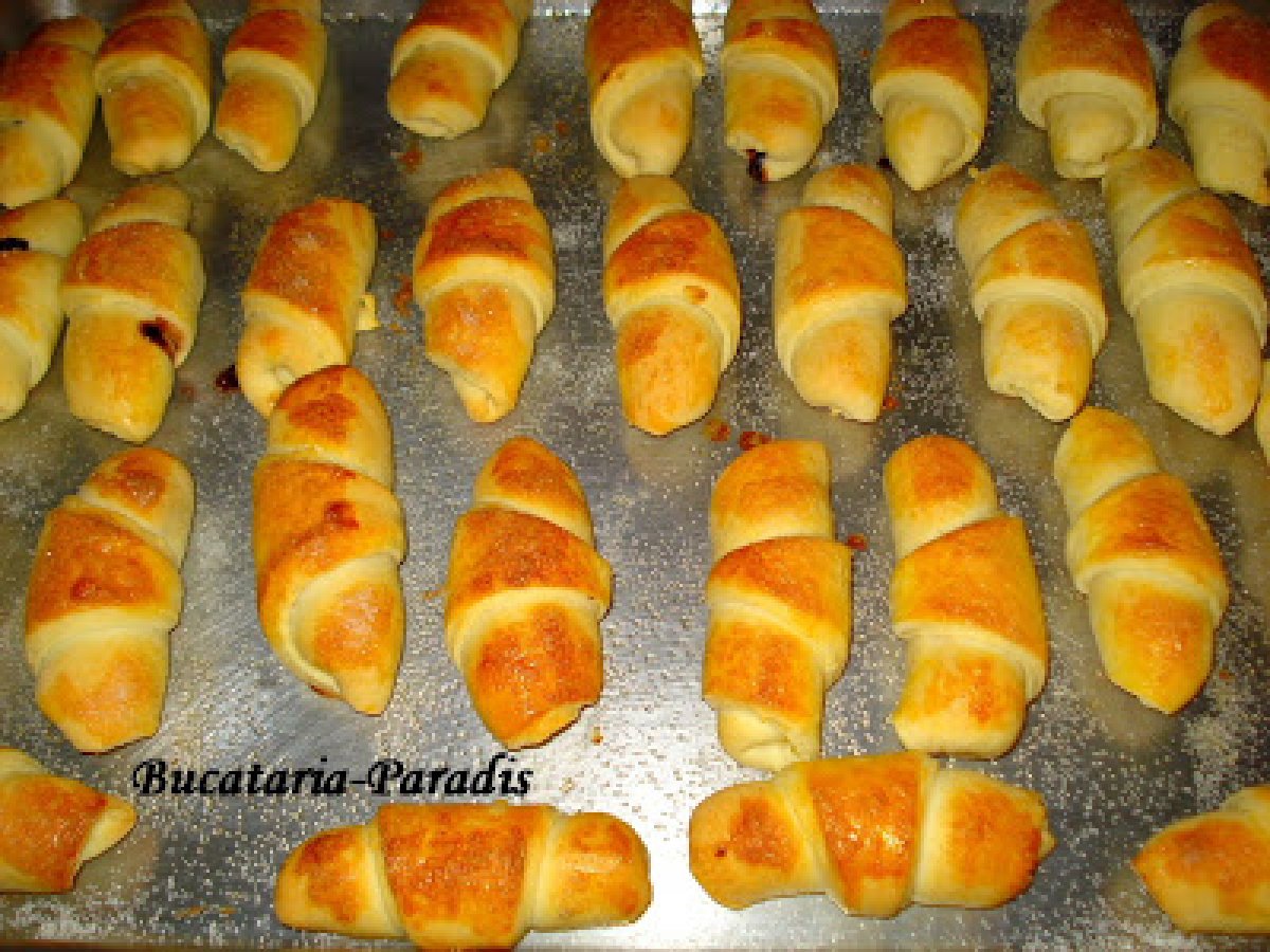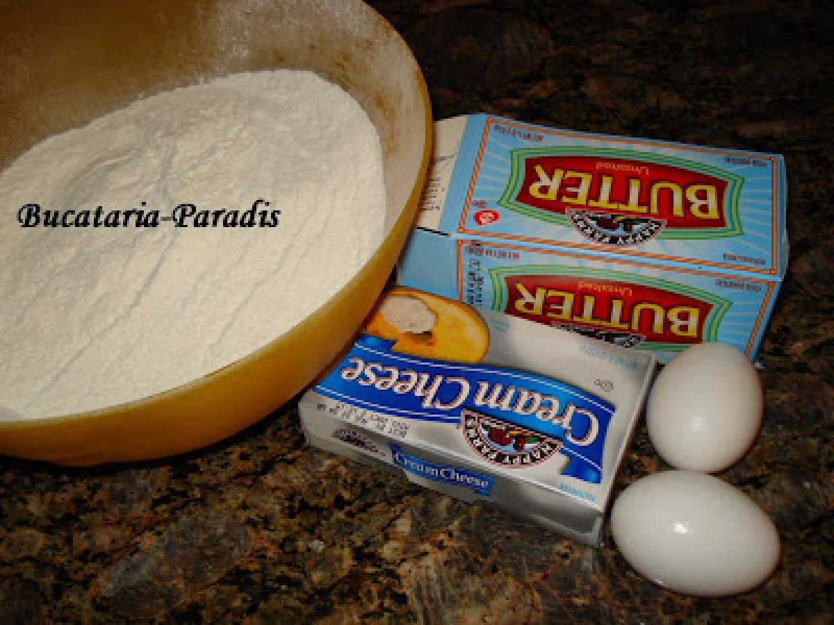 Rugelach(cornuri evreesti) PrecedentulUrmătorul DesertFoarte ușor4 h 40 m Trimite unui prieten Printează pagina Adresează o întrebare autorului Postează o poză cu rețeta gătită de tine Ingrediente 4 225 g unt la temperatura camerei 225 g cream cheese 220 g smintina 2 oua 650-700 grame faina. putina sare ciocolata zahar vaniliat 1 galbenus.