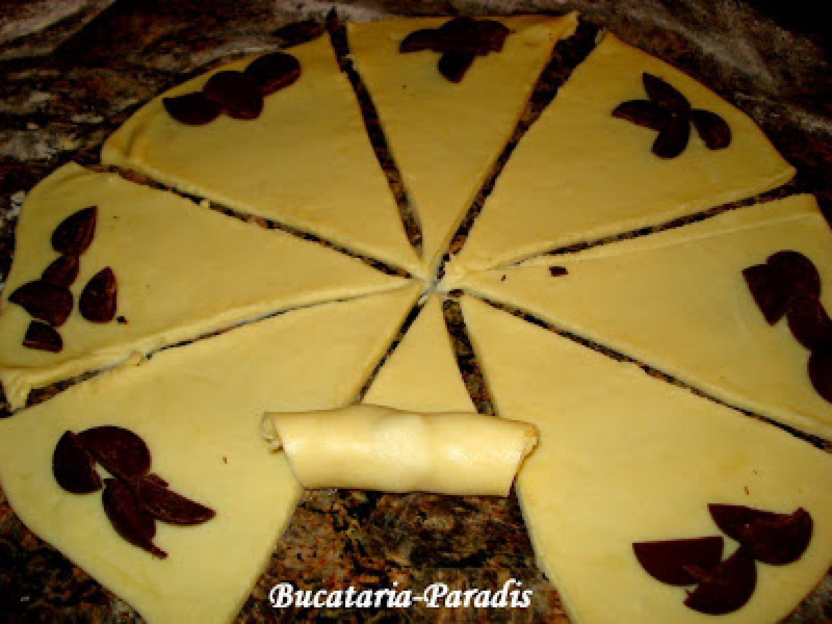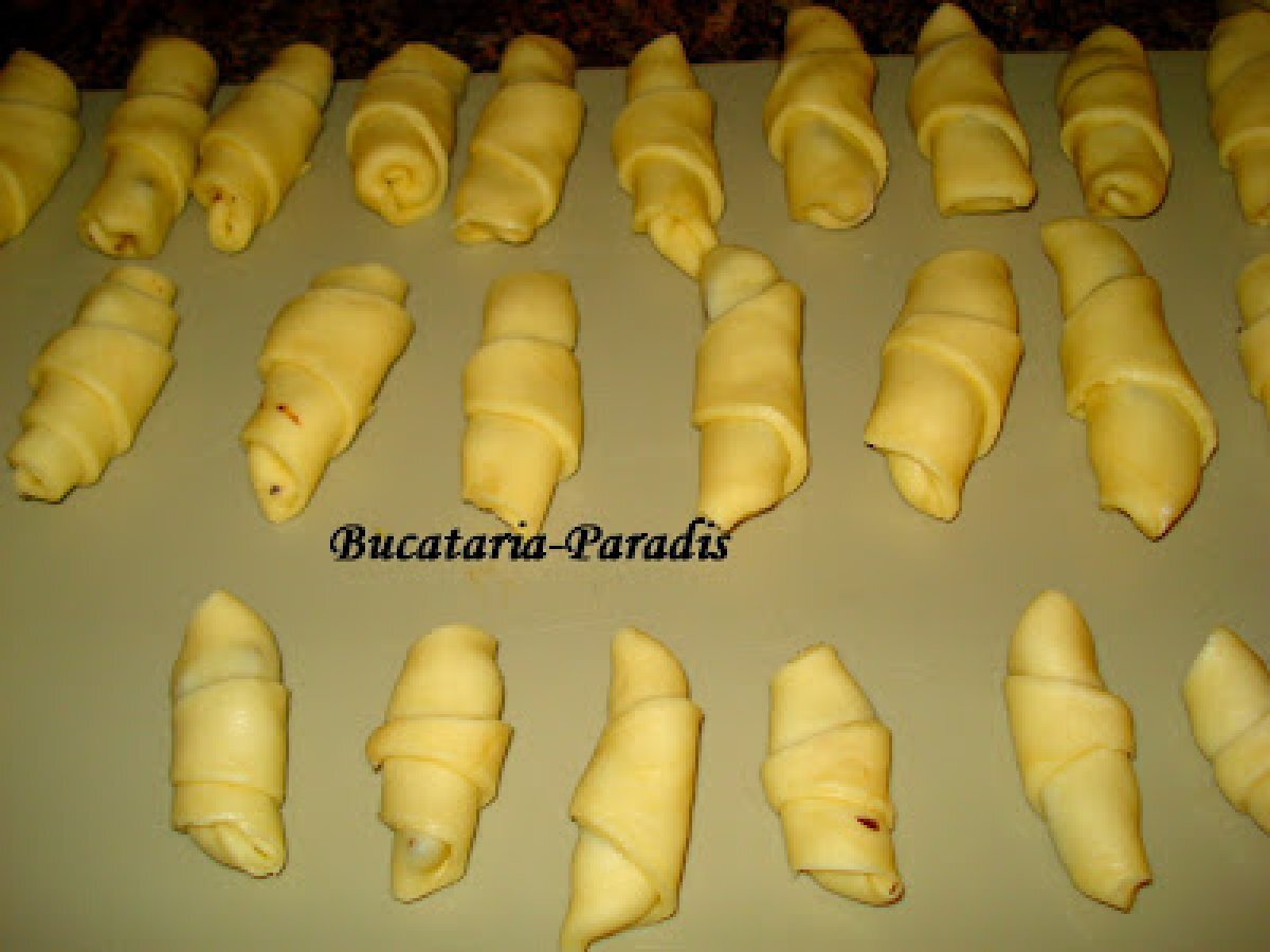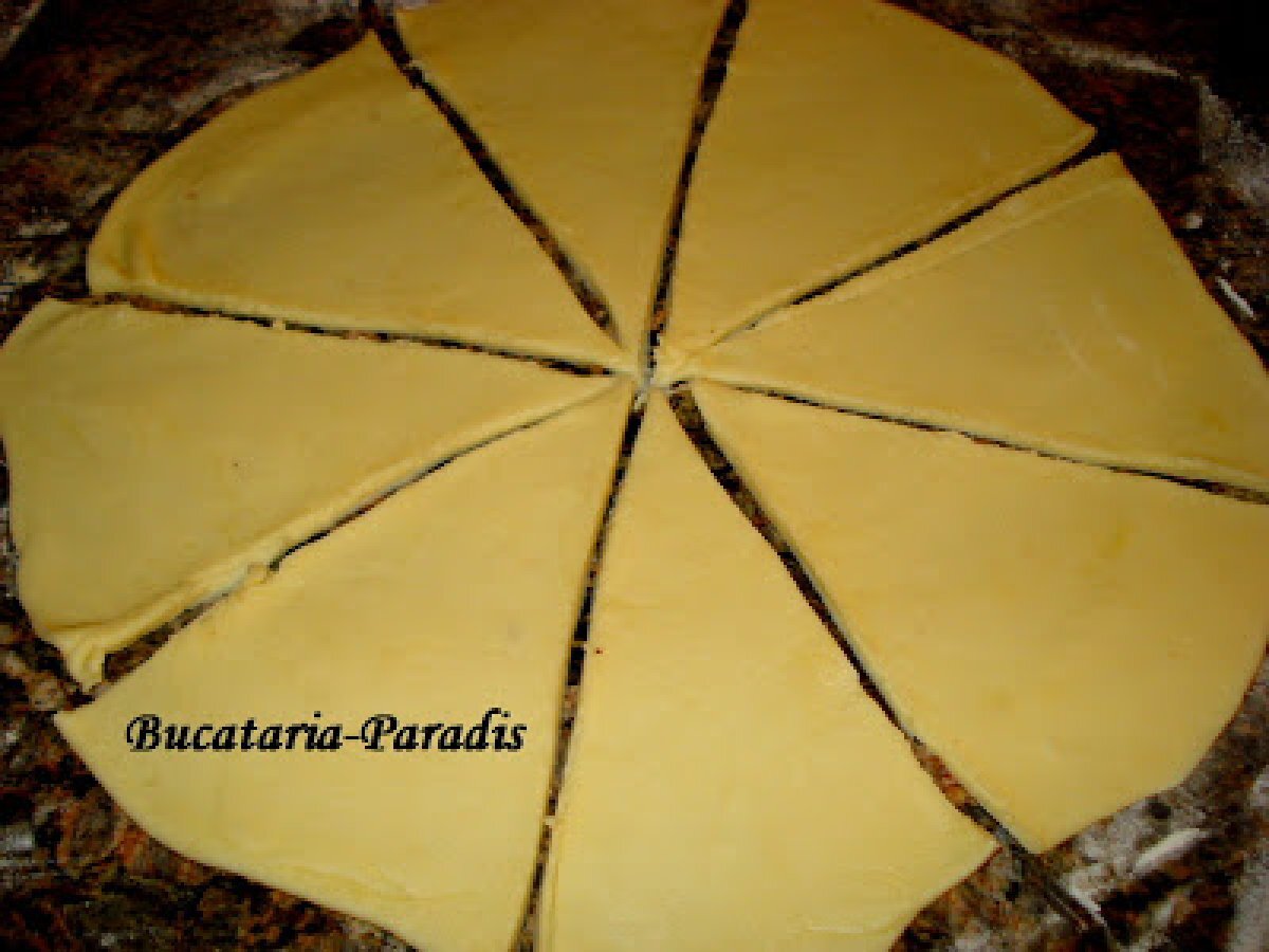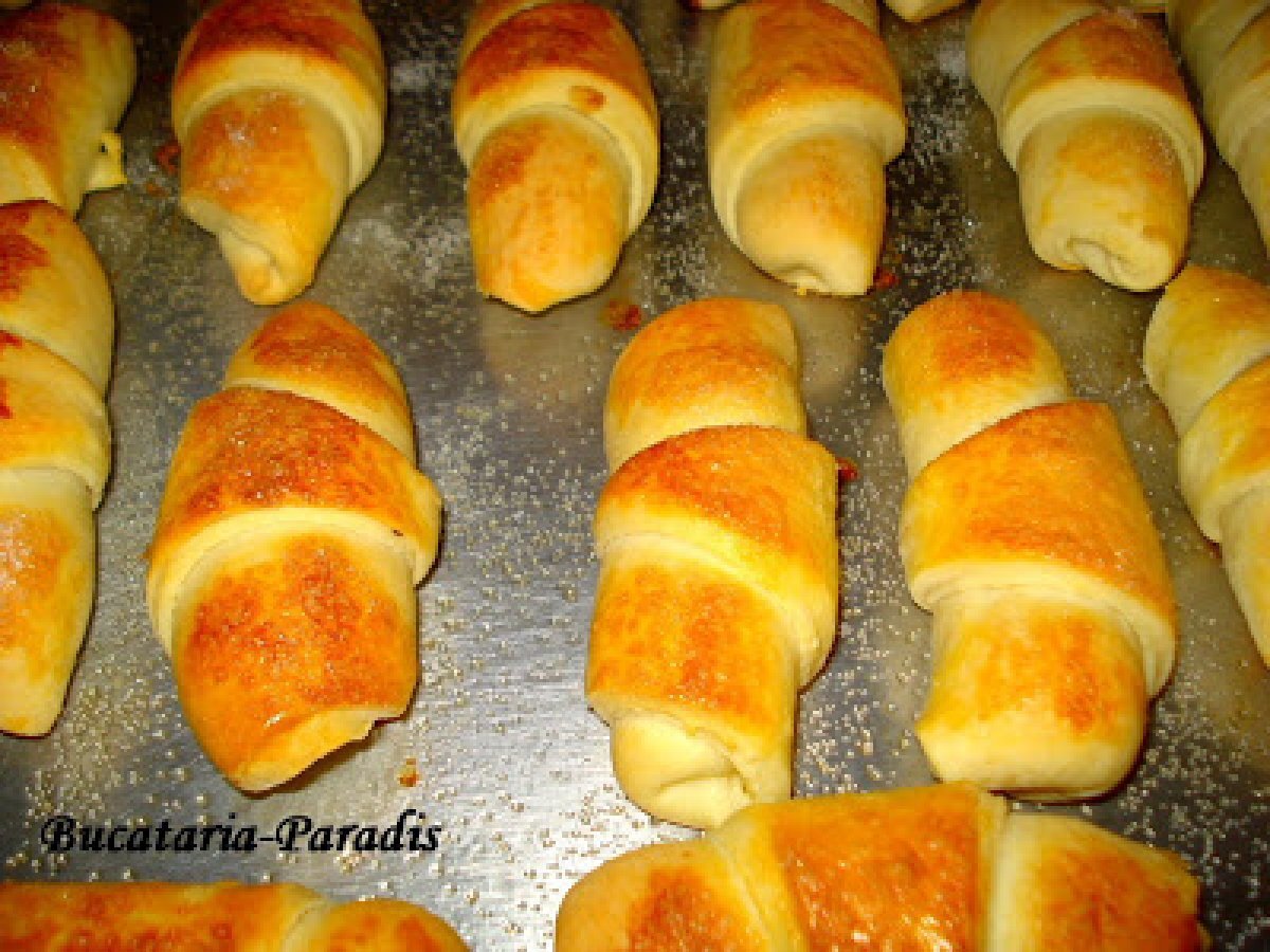 Rugelach(cornuri evreesti) PrecedentulUrmătorul DesertFoarte ușor4 h 40 m Trimite unui prieten Printează pagina Adresează o întrebare autorului Postează o poză cu rețeta gătită de tine Ingrediente 4 225 g unt la temperatura camerei 225 g cream cheese 220 g smintina 2 oua 650-700 grame faina. putina sare ciocolata zahar vaniliat 1 galbenus.