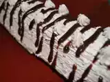 Rulada de ciocolata cu stelute de martipan PrecedentulUrmătorul DesertFoarte ușor55 min Trimite unui prieten Printează pagina Adresează o întrebare autorului Postează o poză cu rețeta gătită de tine Ingrediente 8 Pentru blat: 5 oua 5 linguri zahar 5 linguri apa 3 linguri pline cu faina 1 varf de cutit bicarbonat de sodiu sau 1 lingurita rasa praf de copt 1 lingura cacao Pentru siropul de zahar: 4 linguri apa 75 g. zahar 20 ml. coniac/rom Pentru crema si ornat: 300 g. ciocolata de lapte 400 g. unt 8 galbenusuri 50 g. zahar 40 ml. Cointreau sau alt lichior de portocale 50 g. martipan zahar praf