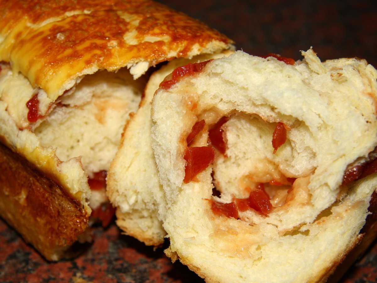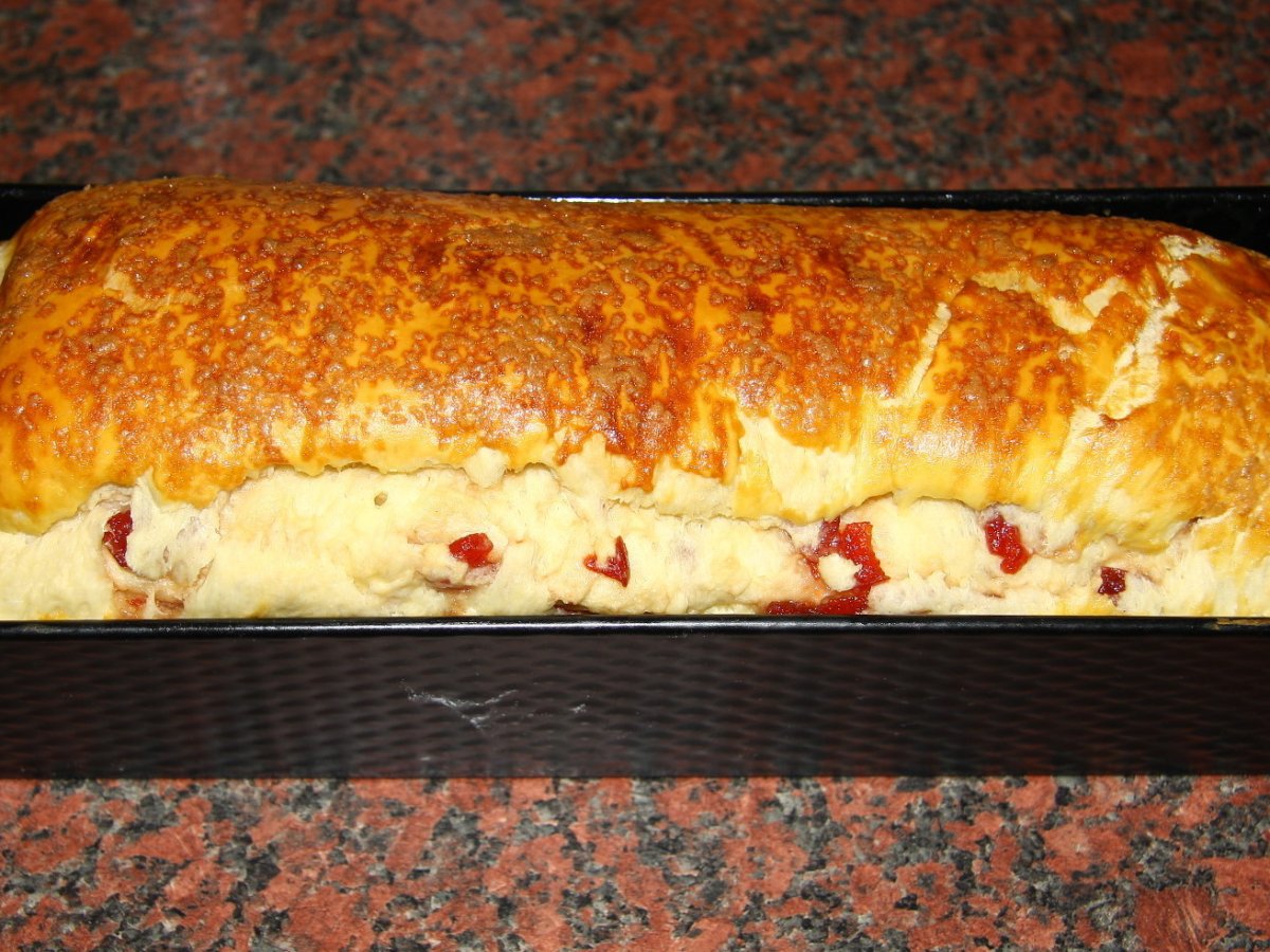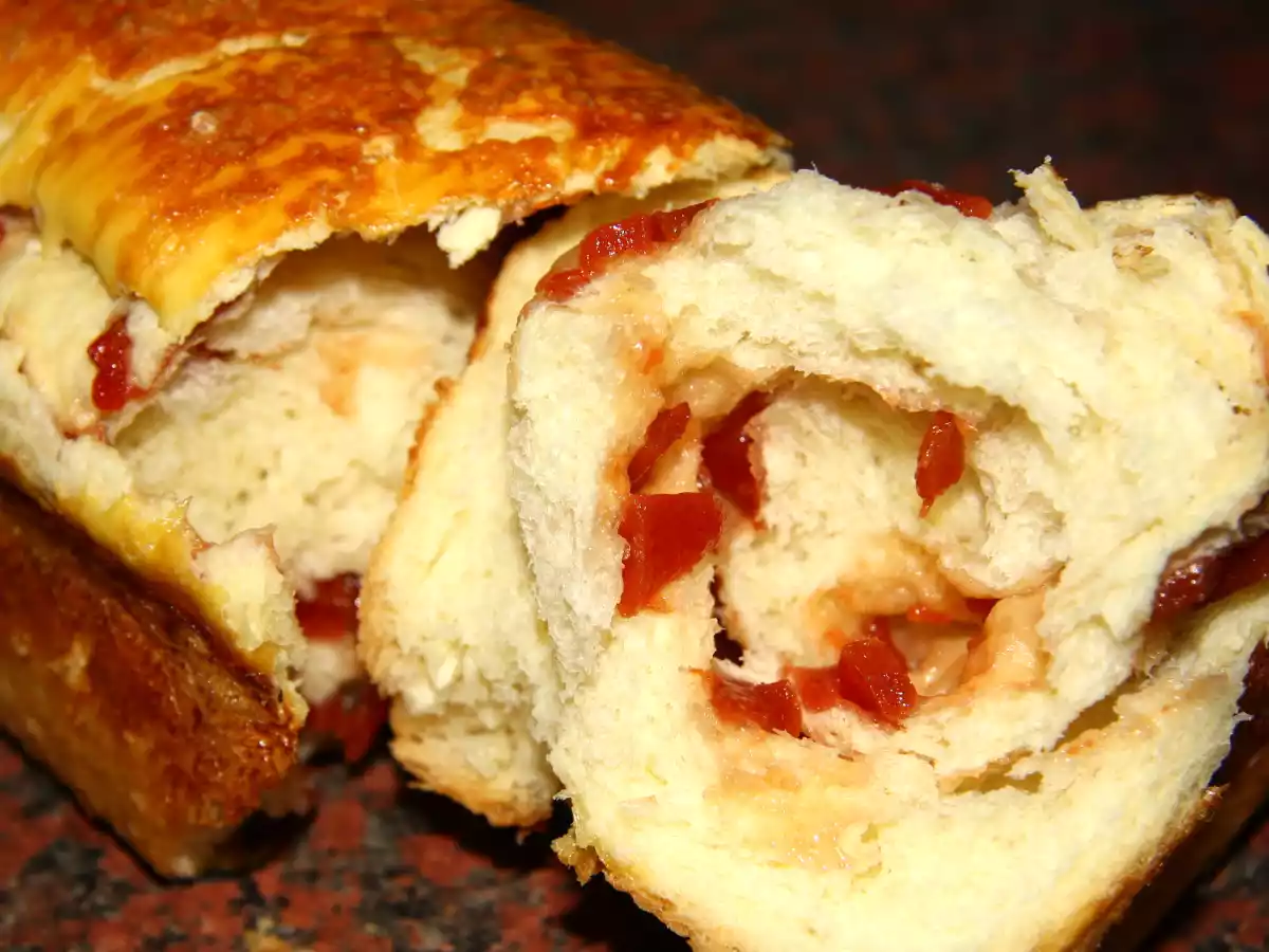 Rulada de cozonac cu gem de gutui PrecedentulUrmătorul DesertUșor2 h 45 m Trimite unui prieten Printează pagina Adresează o întrebare autorului Postează o poză cu rețeta gătită de tine Ingrediente 8 400-500 grame faina, 20 g drojdie proaspata, 2 oua, 150 ml lapte, 25 de grame de unt, 1 lingura de ulei, 1 pachet de zahar vanilat, o esenta de rom, doua lingurite de zahar, 1/2 lingurita de sare, gem de gutui.