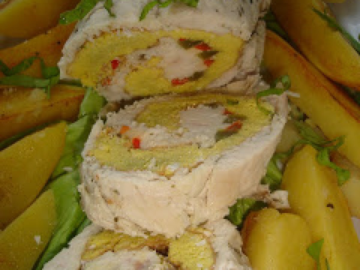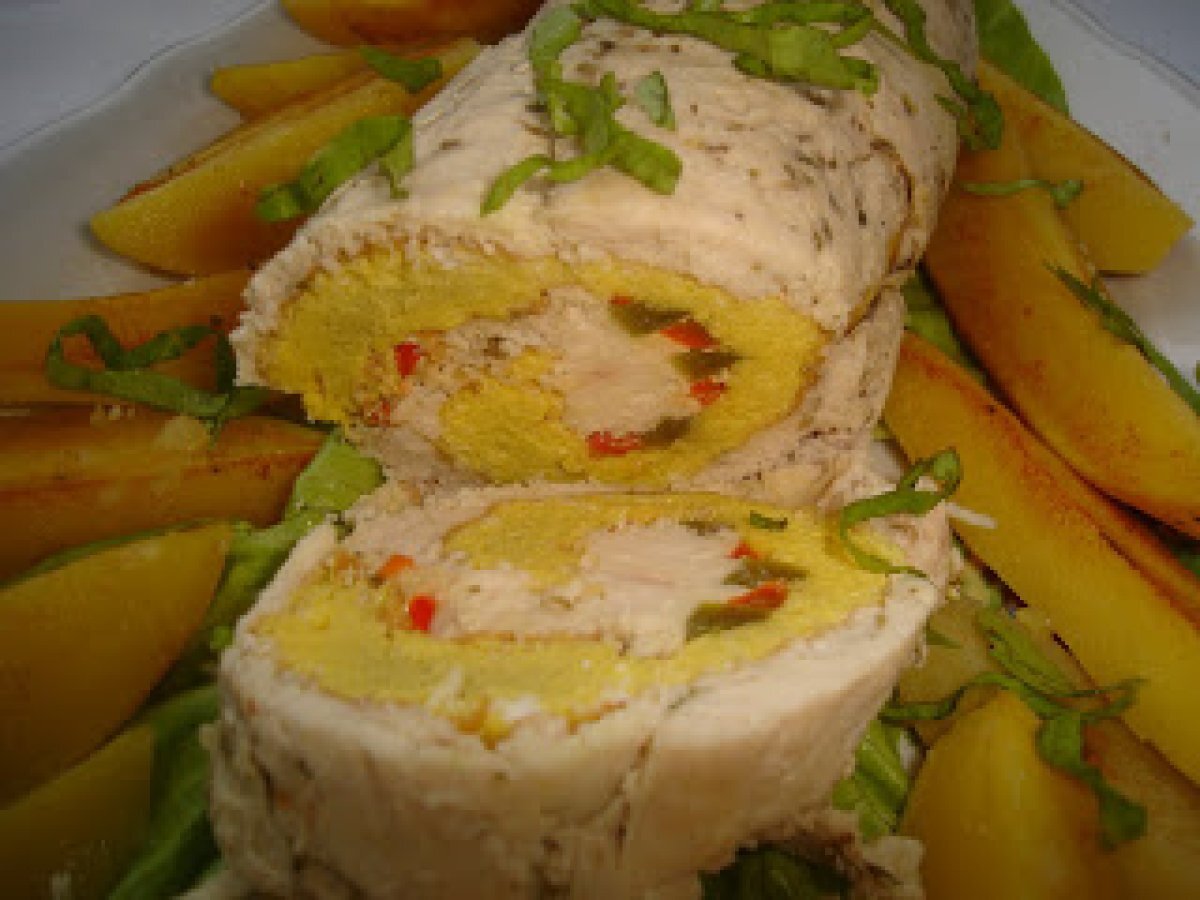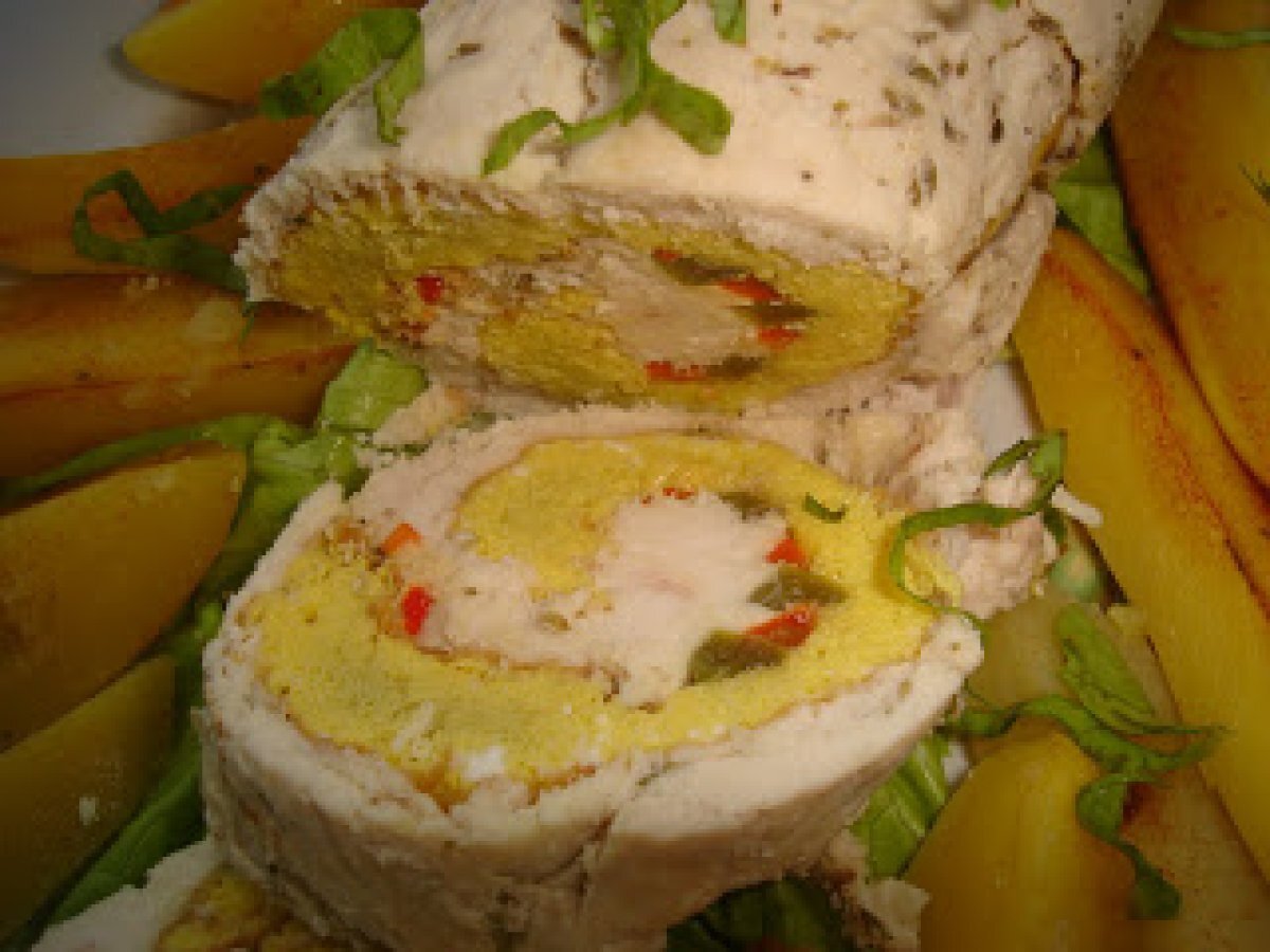 Rulada de pui cu omleta PrecedentulUrmătorul DesertFoarte ușor55 min Trimite unui prieten Printează pagina Adresează o întrebare autorului Postează o poză cu rețeta gătită de tine Ingrediente 6 un piept de pui mare, oregano, ulei de masline, zeama de la o 1/2 lamaie, 3 oua, vegeta, ardei gras verde, ardei capia rosu.