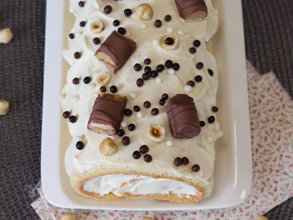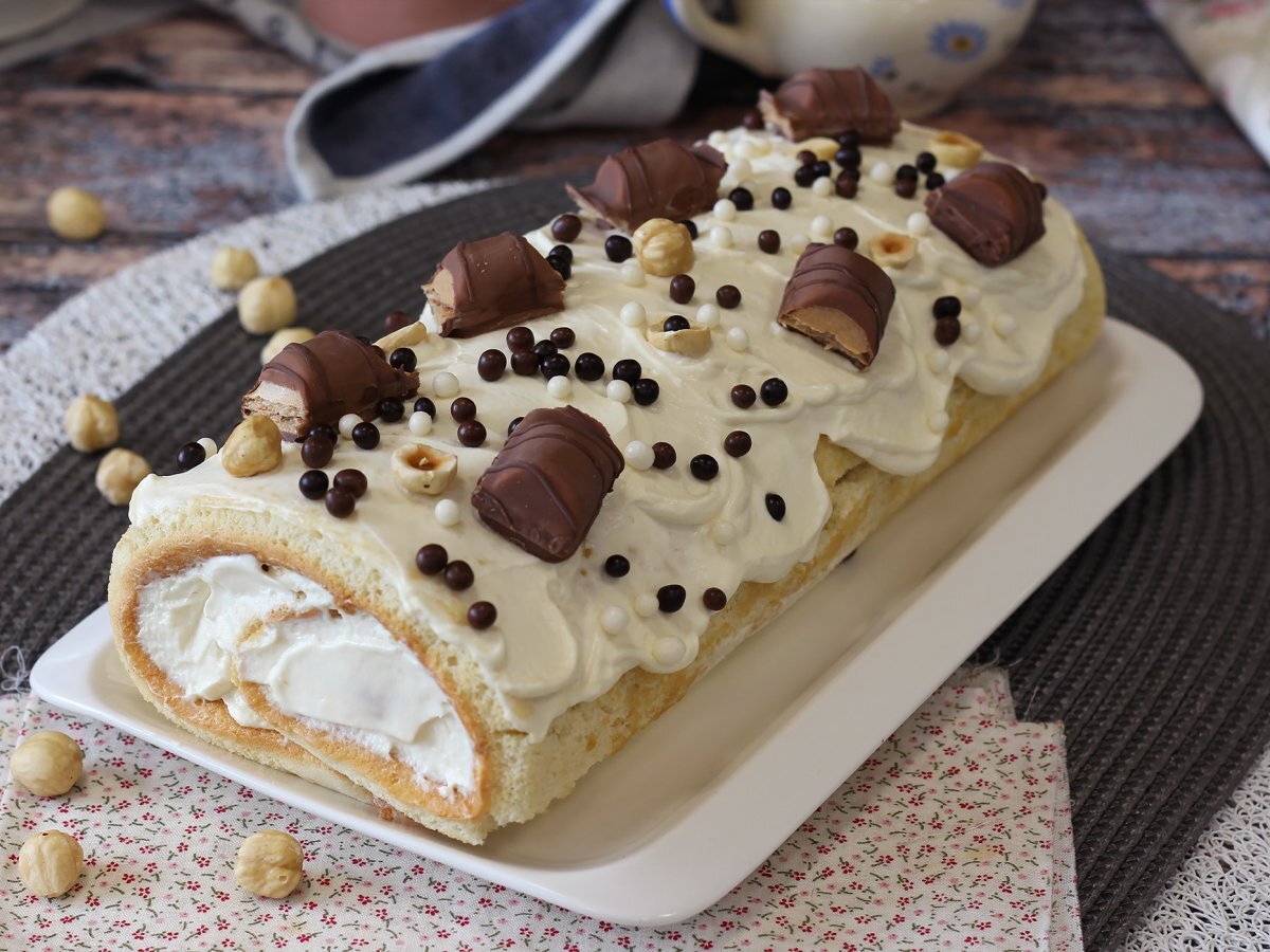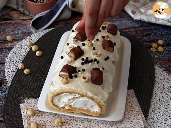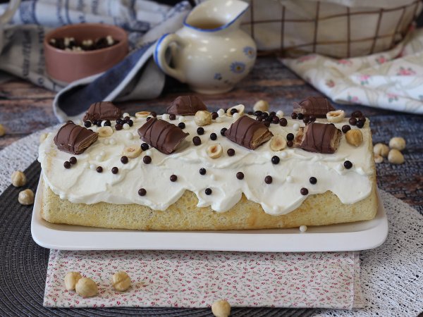 Recunoaștem, suntem absolut ÎNNEBUNIȚI după gustul Kinder Bueno! Nu ne vom sătura de acest gust inimitabil de alune și ciocolată... De data aceasta am abordat un tort rulat absolut delicios, moale și gourmet, care ar putea servi drept tort aniversar dar și un tort de Crăciun. Urmați pașii noștri de mai jos pentru a realiza această mică minune :-)
