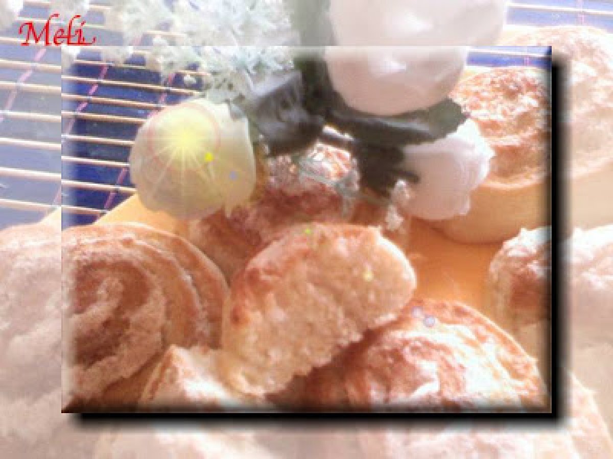 Rulouri cu cocos PrecedentulUrmătorul DesertFoarte ușor50 min816 Kcal Trimite unui prieten Printează pagina Adresează o întrebare autorului Postează o poză cu rețeta gătită de tine Un desert foarte gustos siusor de preparat. Ingrediente 4 un pachet de margarina (250g) 400 g faina 3 galbenusuri 100 ml lapte 20 g drojdie proaspata 3 albusuri 250 g zahar pudra 100 g nuca de cocos 2 pliculete vanilie