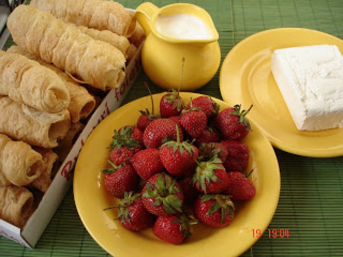 Rulouri umplute cu frisca si capsuni PrecedentulUrmătorul DesertFoarte ușor3 h 15 m Trimite unui prieten Printează pagina Adresează o întrebare autorului Postează o poză cu rețeta gătită de tine Ingrediente 4 200 ml frisca lichida 300 g capsuni 200 g branza fina de vaci rulouri