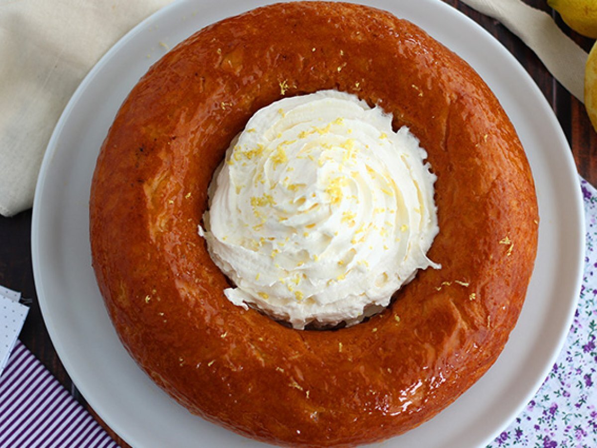 Nu ezitați sa adaugati frisca in centrul babei, peste care o puteti razui coaja de lamaie