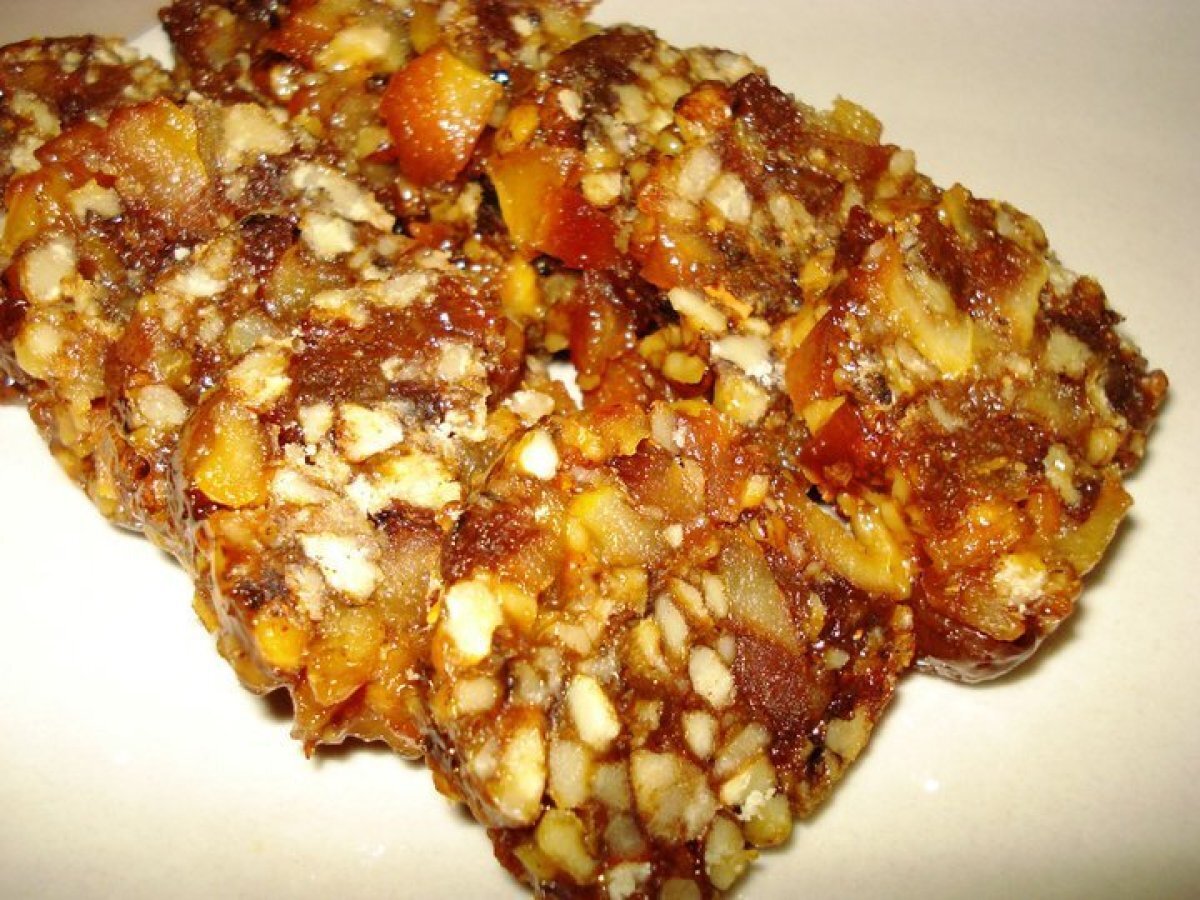 Salam cu gutui DesertFoarte ușor35 min Trimite unui prieten Printează pagina Adresează o întrebare autorului Postează o poză cu rețeta gătită de tine Ingrediente 4 1/2 kg gutui, 200 g zahăr, 100 g stafide, 100 g nuci, o esenţă de rom.
