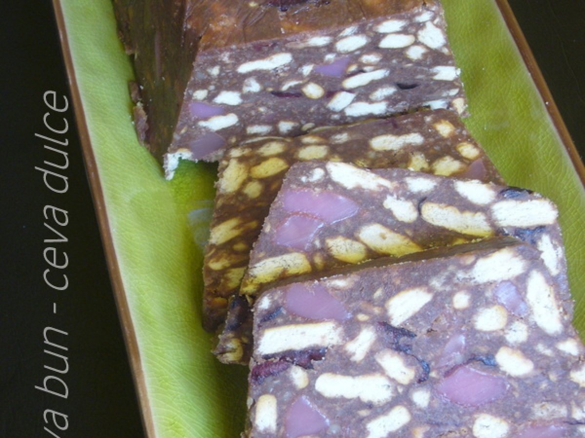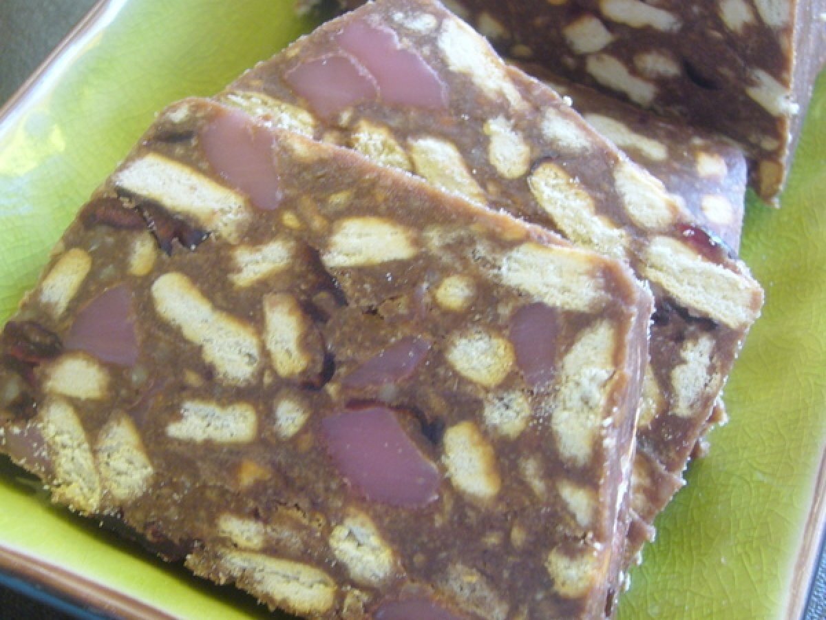 Salam de biscuiti cu jeleu, merisoare si ciocolata