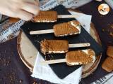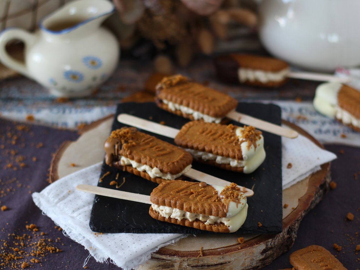 Din familia înghețatei de casă și fără aparat de înghețată, salutăm sandvișul congelat cu speculoos pentru o gustare irezistibilă! Da da, ai auzit bine, un „sandviș”! O smântână delicioasă bătută cu mascarpone, și tot ce trebuie sa faci este sa pui in ea o spatulă de lemn, câteva ore la congelator și e gata, o înghețată delicioasă perfectă pentru degustare! Pentru și mai multă răsfăț, le-am tras în ciocolată albă și ciocolată cu lapte, dar nu ezitați să vă lăsați creativitatea să se dezlănțuie cu topping-urile!