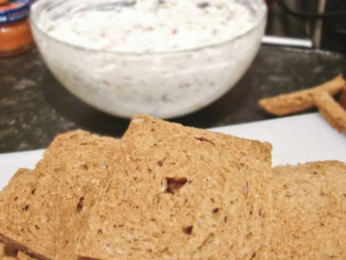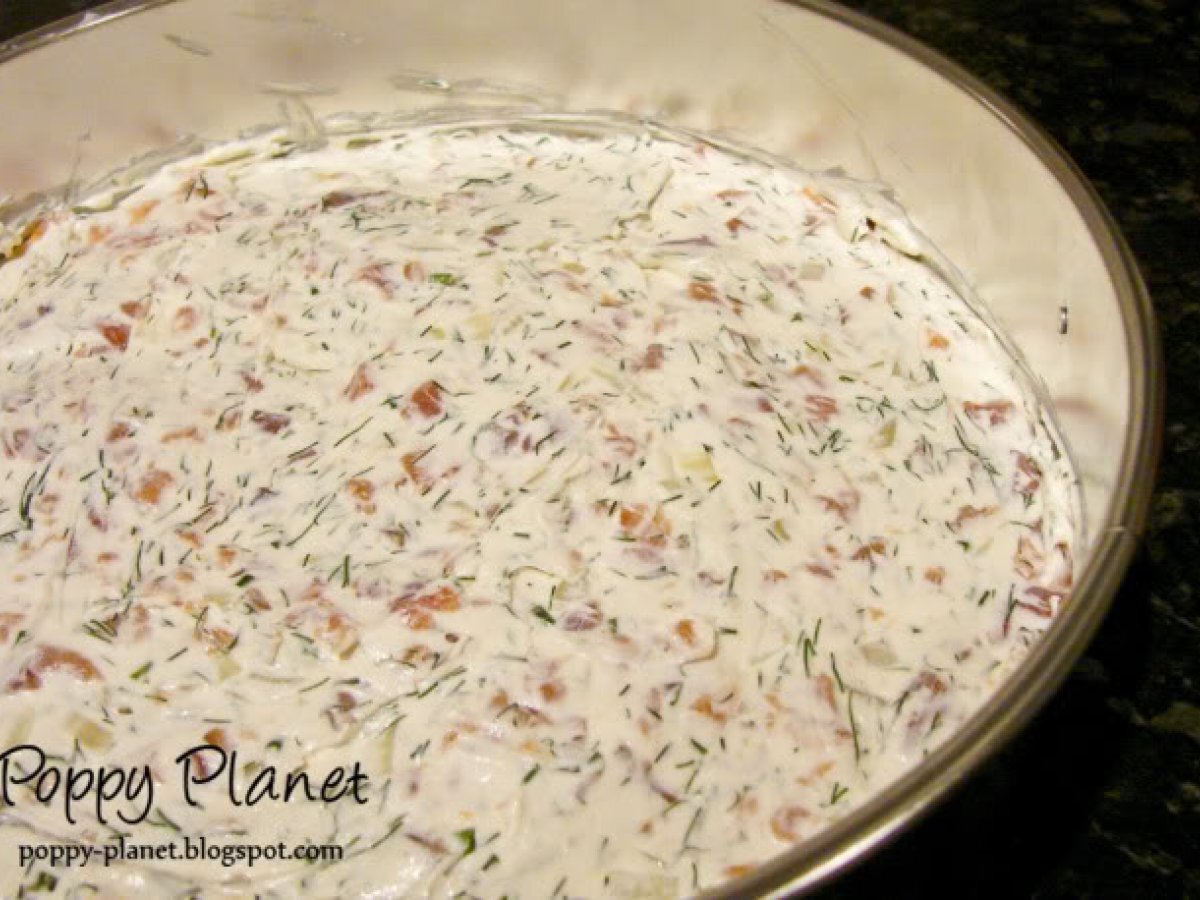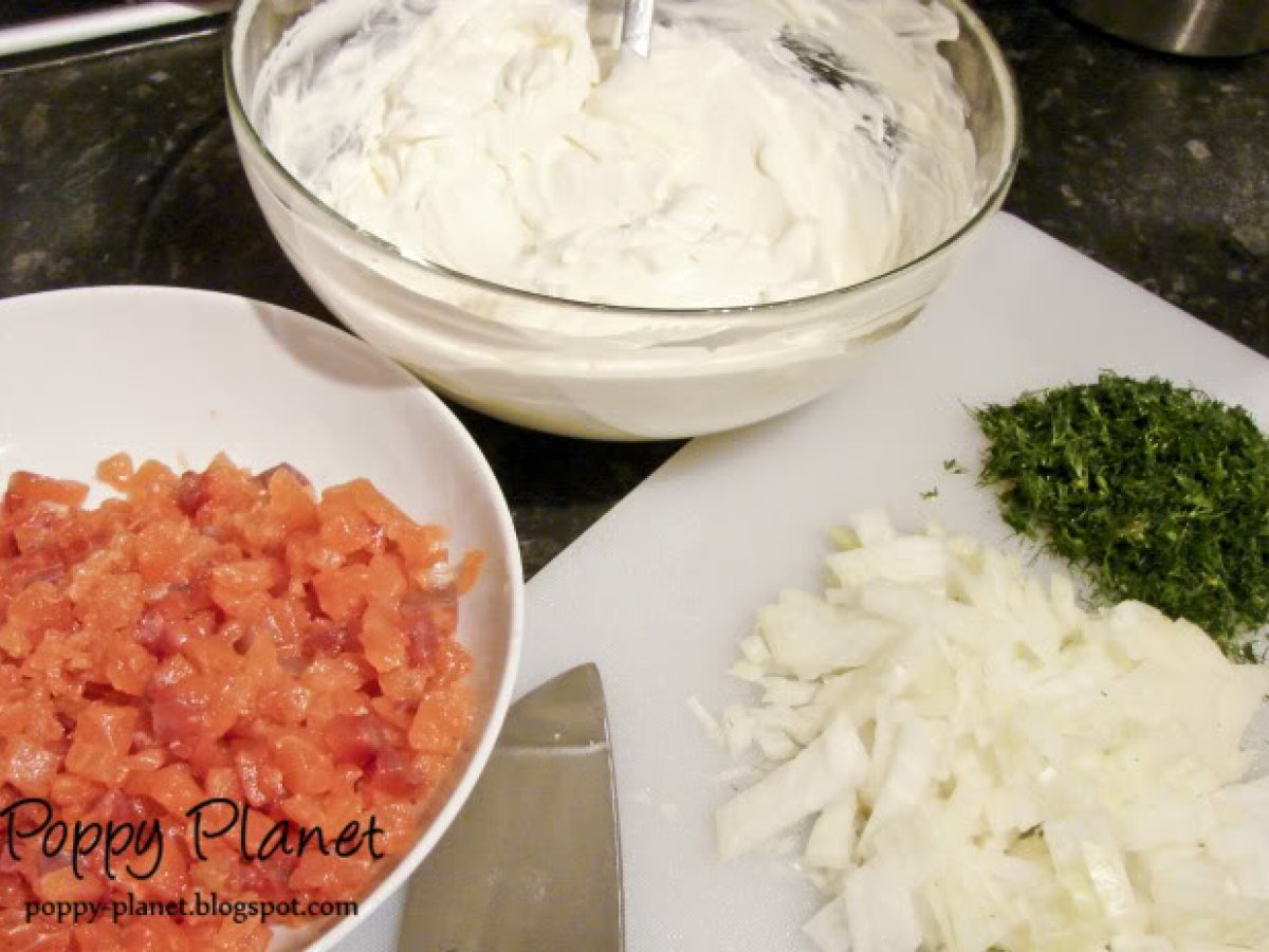 Smörgåstårtor - cheesecake cu somon PrecedentulUrmătorul DesertFoarte ușor50 min Trimite unui prieten Printează pagina Adresează o întrebare autorului Postează o poză cu rețeta gătită de tine Ingrediente 4 pentru blat: 300 g miez de paine neagra si 75 g unt pentru crema: - 400 g branza Philadelphia 200 g smantana 250 g somon afumat 2 cepe potrivite marar tocat pentru ornat: - 150 g icre caviar rosii felii de lamai, marar