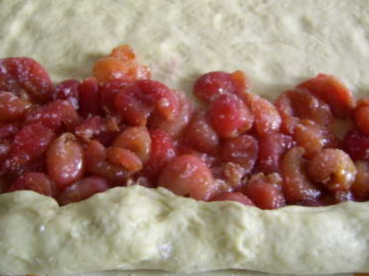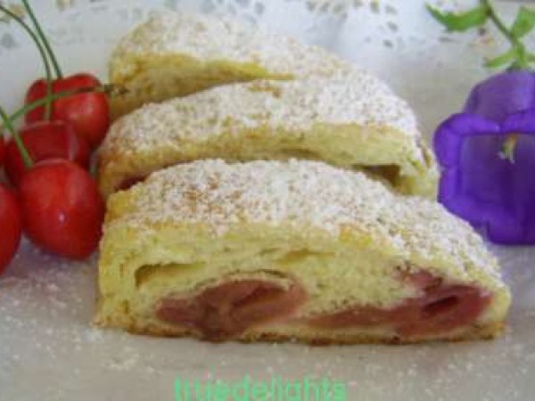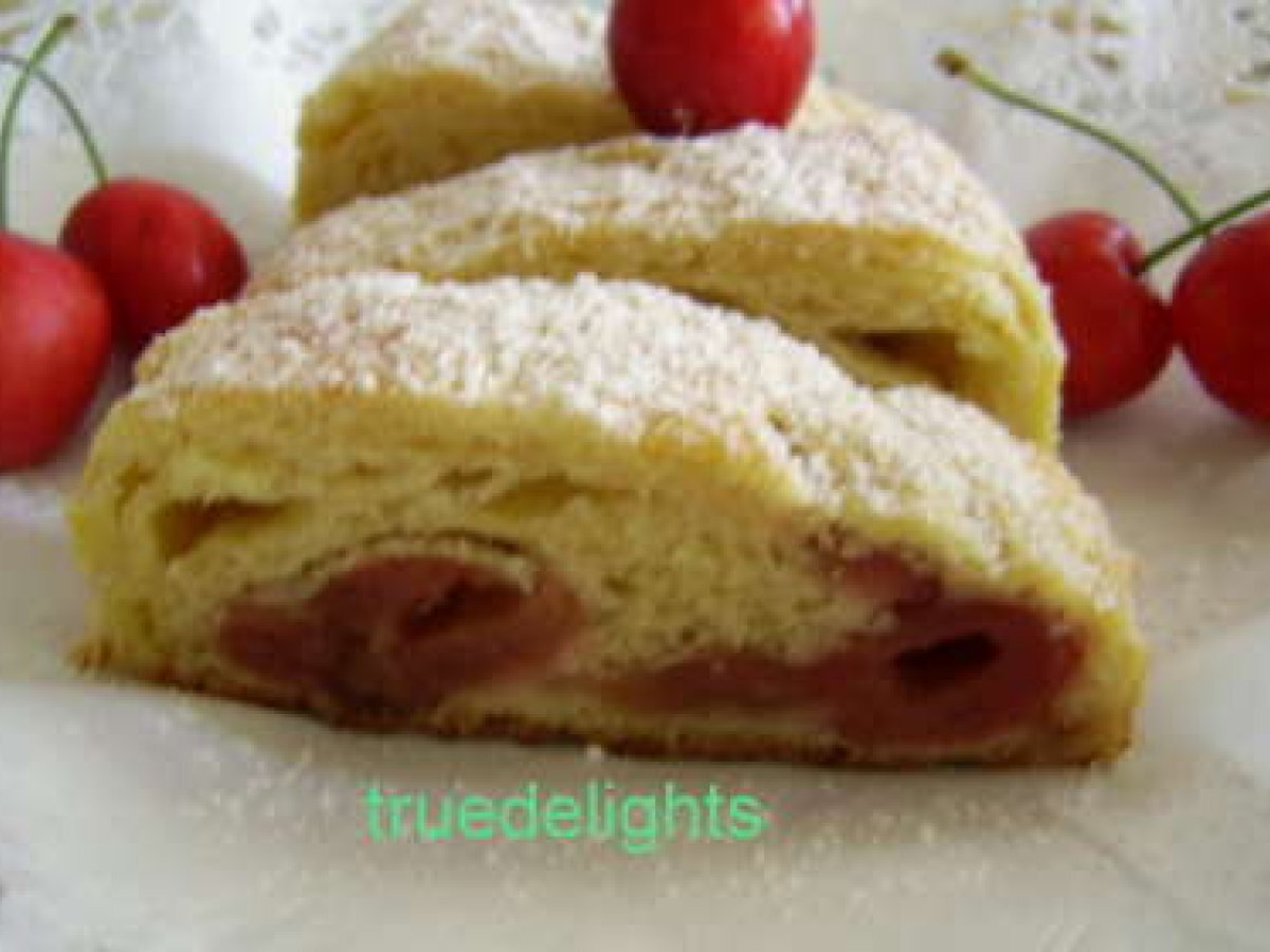 Strudel cu cirese sau visine PrecedentulUrmătorul DesertUșor35 min Trimite unui prieten Printează pagina Adresează o întrebare autorului Postează o poză cu rețeta gătită de tine Ingrediente 6 100 g unt topit 1 ou 4 linguri cu zahar 100 ml lapte un praf de sare drojdie cat o nuca esenta de vanilie 250-300 g faina zahar vanilat Pentru umplutura: 1 kg cirese sau visine 3 linguri gris o cana zahar o cana apa