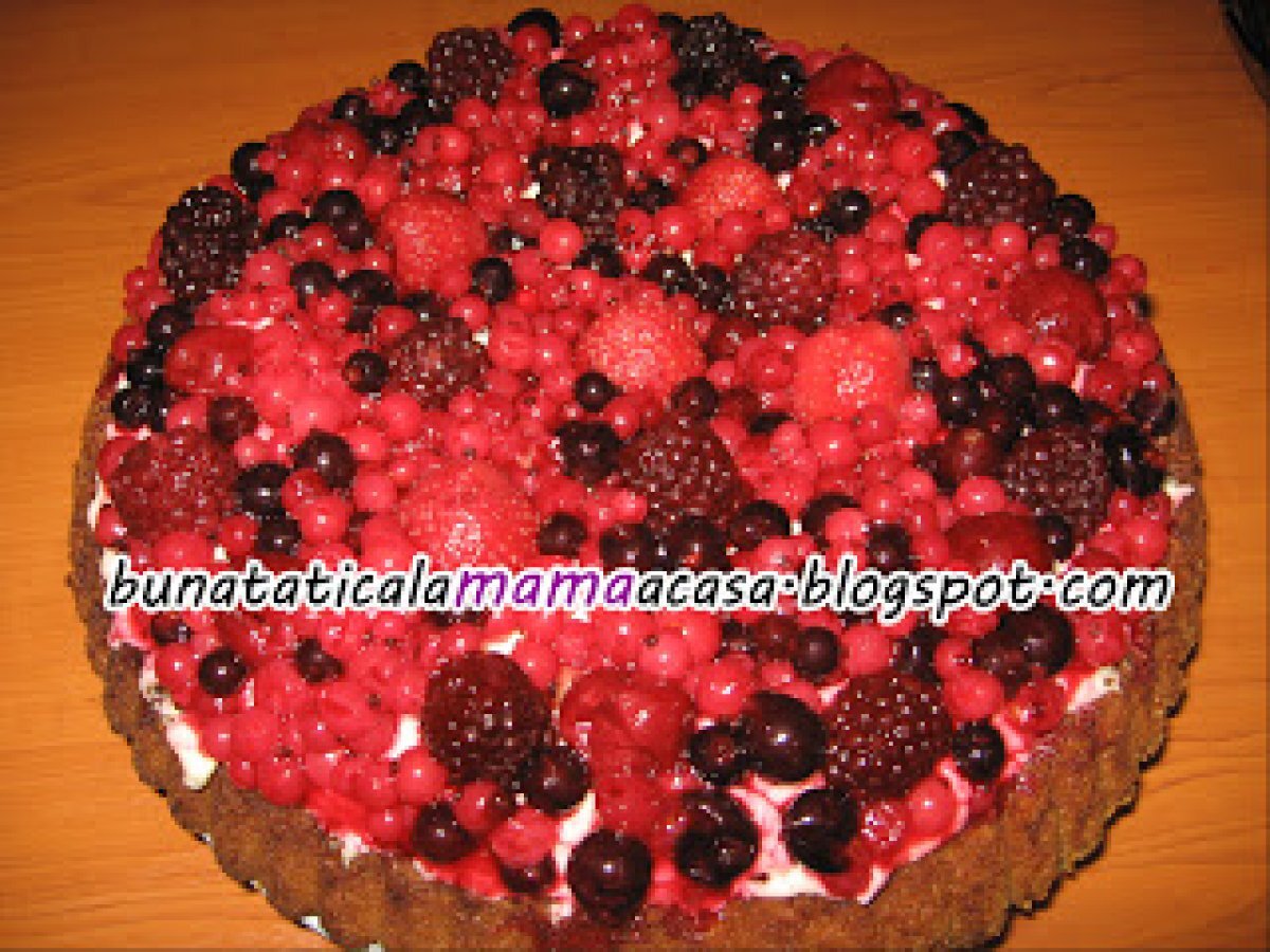Tarta cu fructe de padure PrecedentulUrmătorul DesertFoarte ușor55 min Trimite unui prieten Printează pagina Adresează o întrebare autorului Postează o poză cu rețeta gătită de tine Ingrediente 10 blat: 125 g faina 3 oua 125 g zahar 125 g unt 1 plic praf de copt crema: 2 plicuri crema pentru tarte 500 ml lapte rece toping fructe: 500 g fructe de padure 1 plic tort gelee tansparent 2 linguri zahar