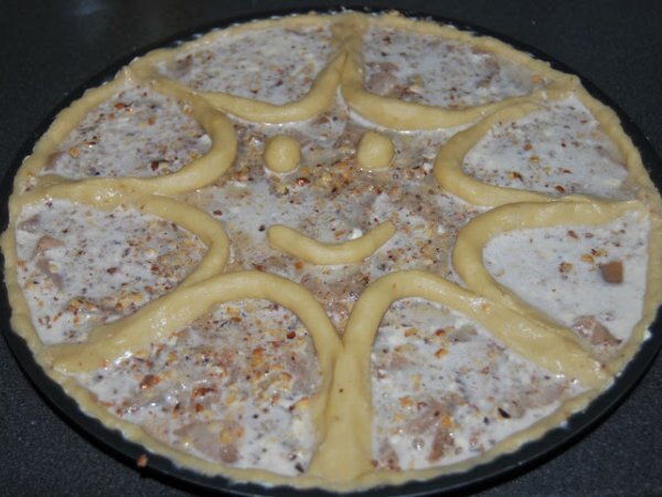 Tarta cu pere si nuci PrecedentulUrmătorul DesertFoarte ușor1 h 10 m Trimite unui prieten Printează pagina Adresează o întrebare autorului Postează o poză cu rețeta gătită de tine Ingrediente 4 Aluat: 250 g faina 30 g zahar 100 g unt 1 ou sare Umplutura: 2 borcane compot de pere 50 g nuci maruntite 2 oua 30 g faina 70 g zahar 1 zahar vanilat 150 ml lapte
