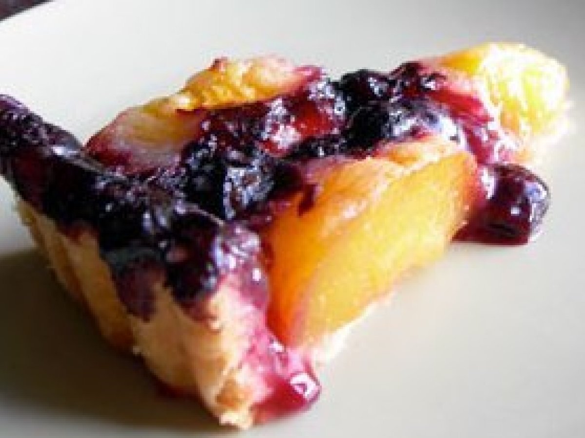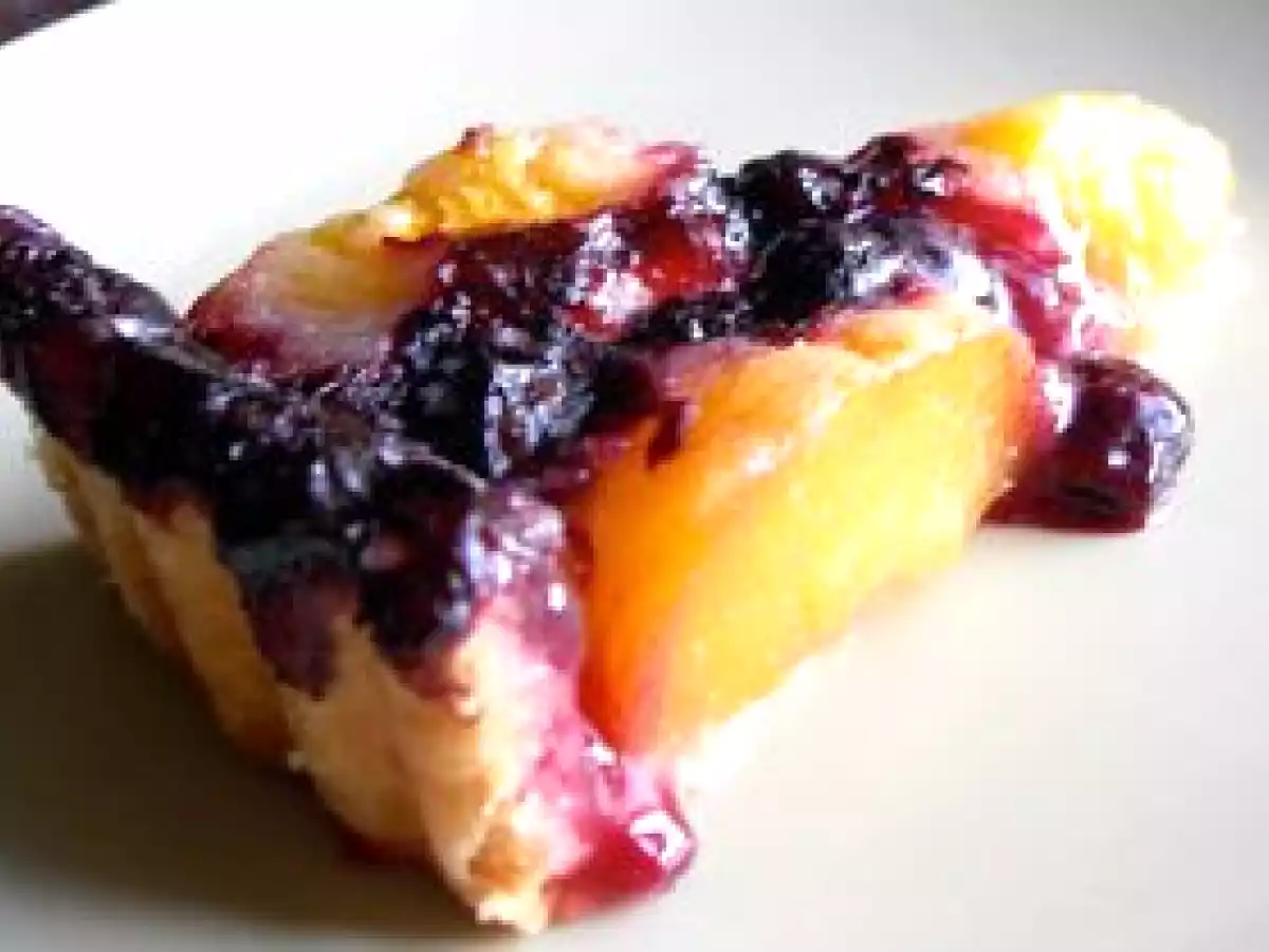 Tarta cu piersici si afine DesertFoarte ușor55 min Trimite unui prieten Printează pagina Adresează o întrebare autorului Postează o poză cu rețeta gătită de tine Ingrediente 6 1 1/2 cana faina 1/4 cana zahar 1/2 lingurita bicarbonat o priza de sare 1/2 cana de unt 1 galbenus zeama de la o lamaie apa rece-cata e nevoie pt. a face aluatul Pentru umplutura: 1/2 cana unt 1/3 cana zahr 2 oua mari 1 cana de migdale taiate fin 1 lingurita esenta de vanilie 1/2 cana de dulceata de piersici 1 cana de afine mari 300 g de piersici