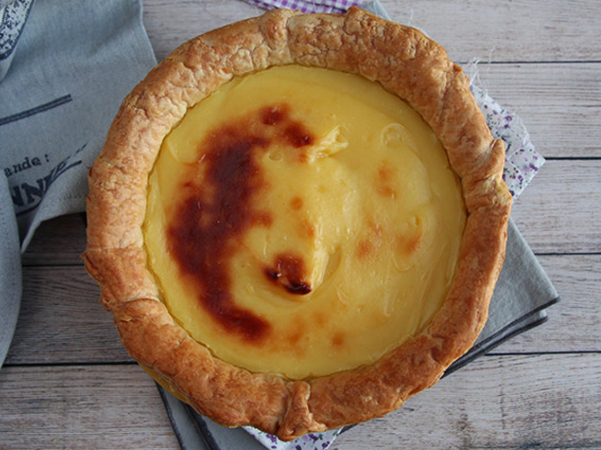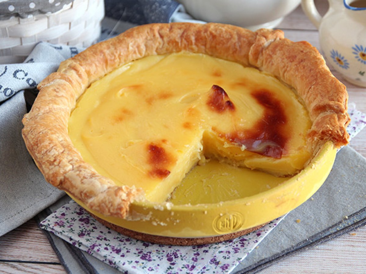 Tarta Portugheza este sora mai mare a lui Pastel de Nata, prajitura traditional portugheza cu aluat foietaj si crema de ou. Noi am facut varianta Maxi, de impartit cu toata familia :)