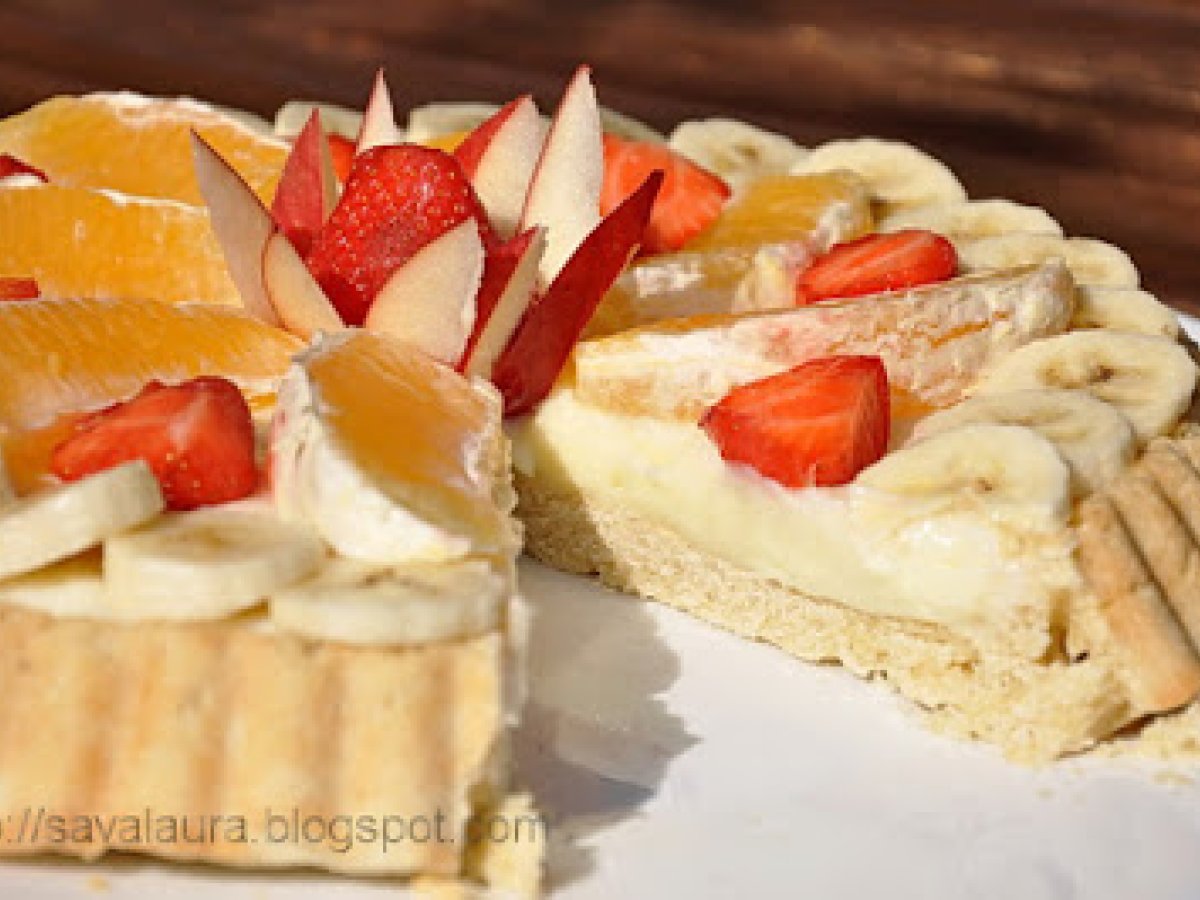 Tarta rapida cu fructe PrecedentulUrmătorul DesertFoarte ușor55 min Trimite unui prieten Printează pagina Adresează o întrebare autorului Postează o poză cu rețeta gătită de tine Ingrediente 8 Pentru blat: 3 oua 400 g. faina 150 g. unt 100 g. zahar tos Pentru sarlota: 2 plicuri praf de budinca de vanilie sau 1 portie crema de vanilie 100 g. portocale 100 g. capsuni 100 g. mere 100 g. banane