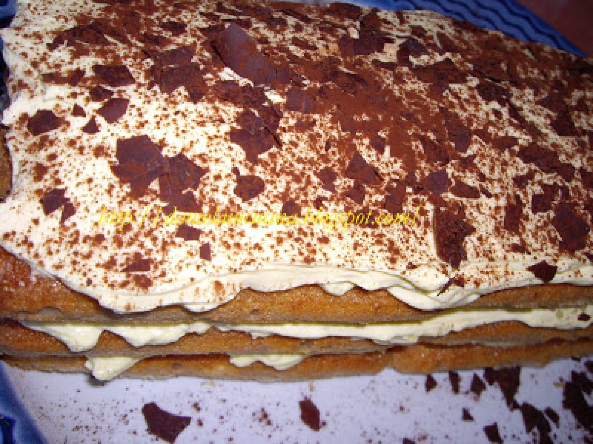 Tiramisu cu mascarpone PrecedentulUrmătorul DesertFoarte ușor55 min Trimite unui prieten Printează pagina Adresează o întrebare autorului Postează o poză cu rețeta gătită de tine Ingrediente 4 24 bucati piscoturi 250 g mascarpone 2 linguri zahar 2 galbenusuri de ou 3 linguri frisca lichida cafea/capuccino/lapte miez de nuca cacao fulgi de ciocolata