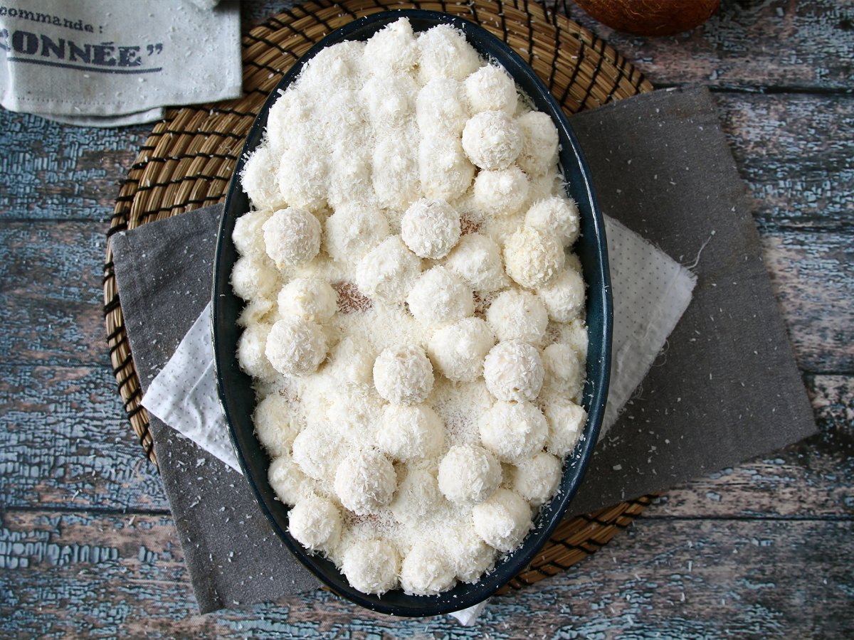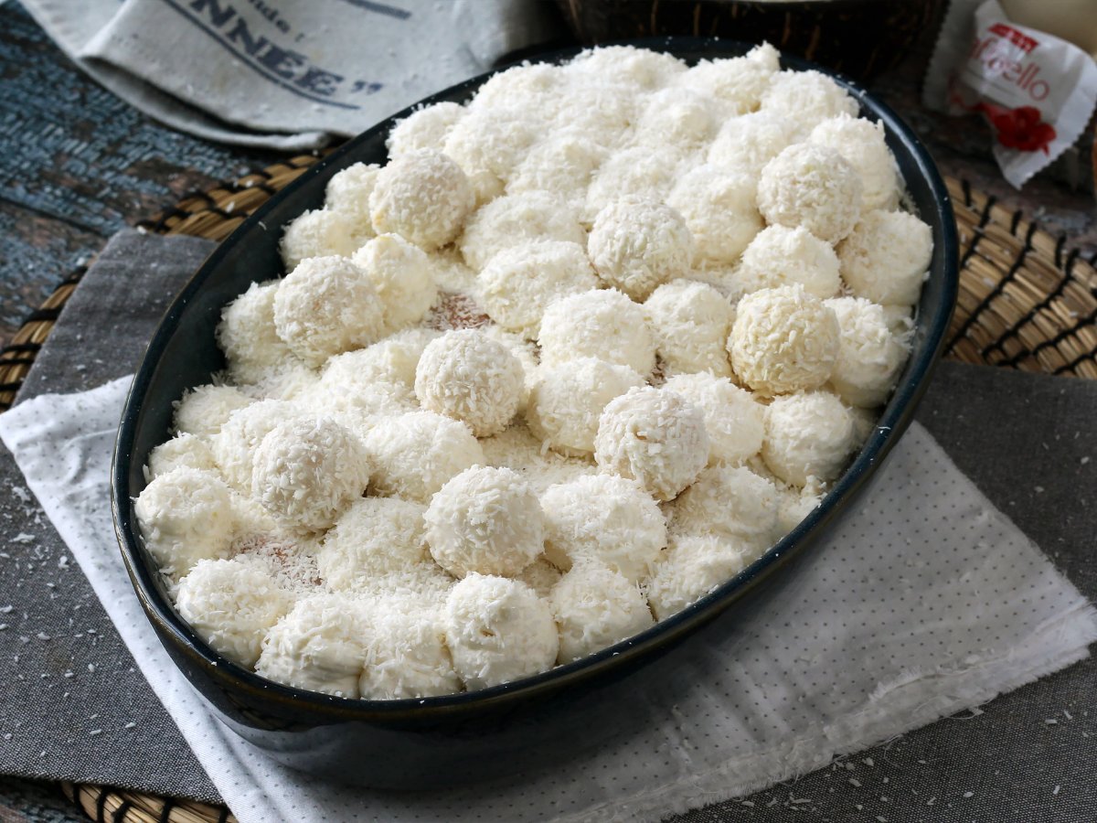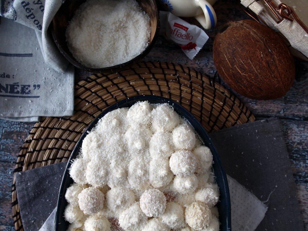 Dragostea noastră pentru deserturile cu nucă de cocos nu mai trebuie dovedită... În verrine, în rulouri, flan, acest fruct dulce se adaptează la o grămadă de rețete pe care le iubim! Și totuși astăzi, credem că am găsit desertul nostru preferat cu nucă de cocos: tiramisu Raffaello! Aceste bile crocante din napolitana, ciocolata albă, migdale și nucă de cocos sunt irezistibile.