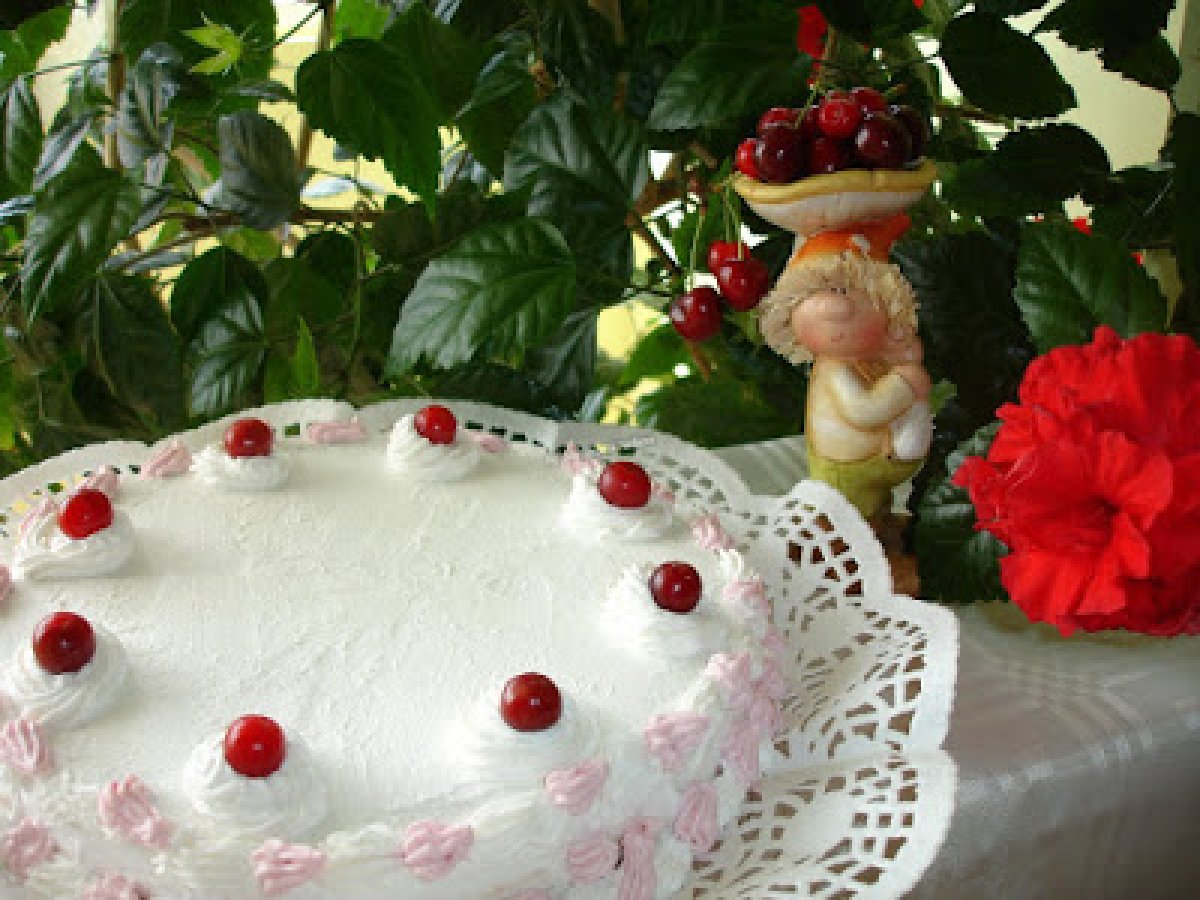 Tort alb cu visine si ciocolata PrecedentulUrmătorul DesertFoarte ușor1 h 5 m Trimite unui prieten Printează pagina Adresează o întrebare autorului Postează o poză cu rețeta gătită de tine Ingrediente 10 Blat : 250 g faina 100 ml ulei 100 ml lapte gras 1 mana de stafide Putin cognac Esente 3 oua mari 400 g gem acrisor 1 plic praf de copt Putina zeama de lamaie 1 lingurita coaja de portocale Crema ganache : 200 ml smantana 200 g ciocolata cu lapte si amaruie Pentru asanblare : 300 ml smantana ½ kg visine Zeama din compot pentru insiropat