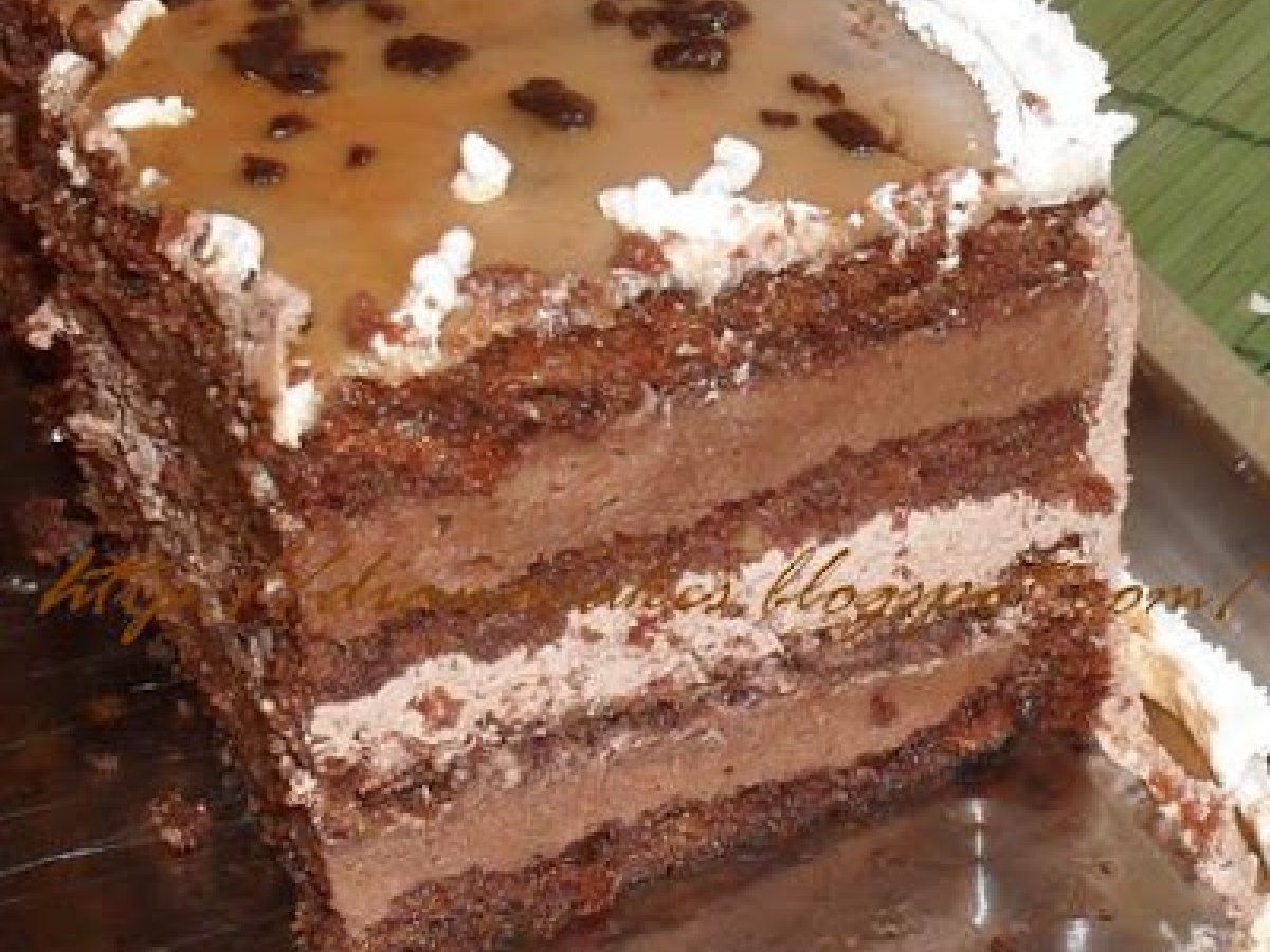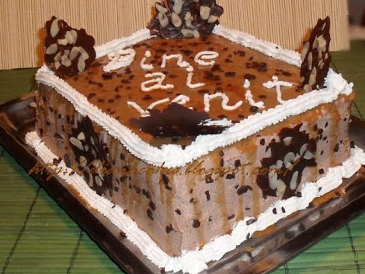 Tort amandina PrecedentulUrmătorul DesertFoarte ușor1 oră Trimite unui prieten Printează pagina Adresează o întrebare autorului Postează o poză cu rețeta gătită de tine Ingrediente 4 pt blat 6 oua 200 g zahar 4 linguri apa 50 ml ulei cacao 10 linguri faina 1 plic praf de copt pt crema I 6 oua 6 linguri de zahar 10 g gelatina 1 pachet de unt 100 g ciocolata crema II 250 ml frisca 2-3 linguri zahar pudra 100 g ciocolata sau 3 linguri nutella sirop 4 linguri de zahar se topesc si se stinge cu 300ml apa, se adauga esenta de rom