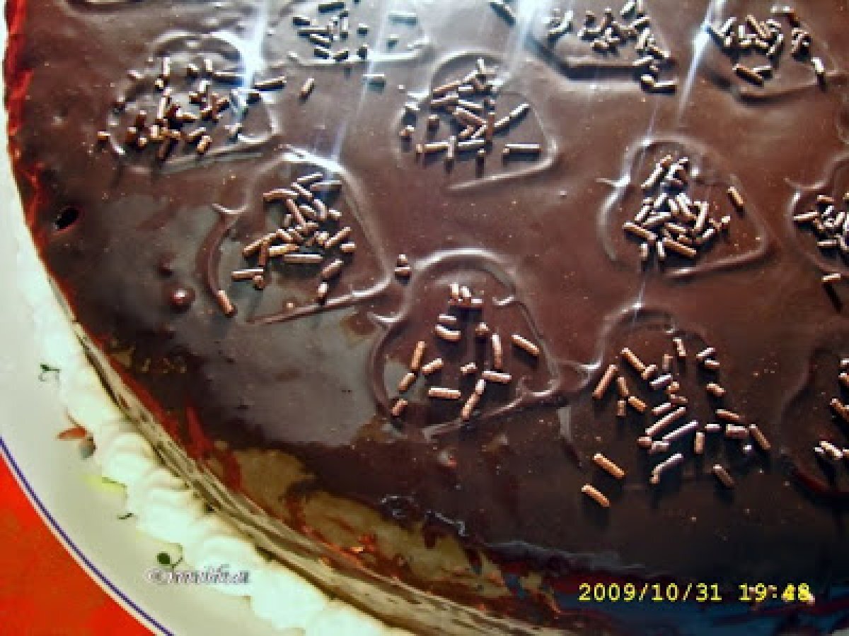 Tort aniversar PrecedentulUrmătorul DesertFoarte ușor1 h 30 m Trimite unui prieten Printează pagina Adresează o întrebare autorului Postează o poză cu rețeta gătită de tine Ingrediente 4 6 oua 150 g zahar 3 linguri apa minerala 1 plic budinca de caramel 20 g cacao 100 g faina 1 lingurita praf de copt 200 g ciocolata alba 200 g unt 6 linguri frisca lichida 50 ml coniac 150 g zahar 50 g cacao 100 ml frisca lichida 100 ml apa 1 lingurita gelatina 100 g zahar 100 ml apa
