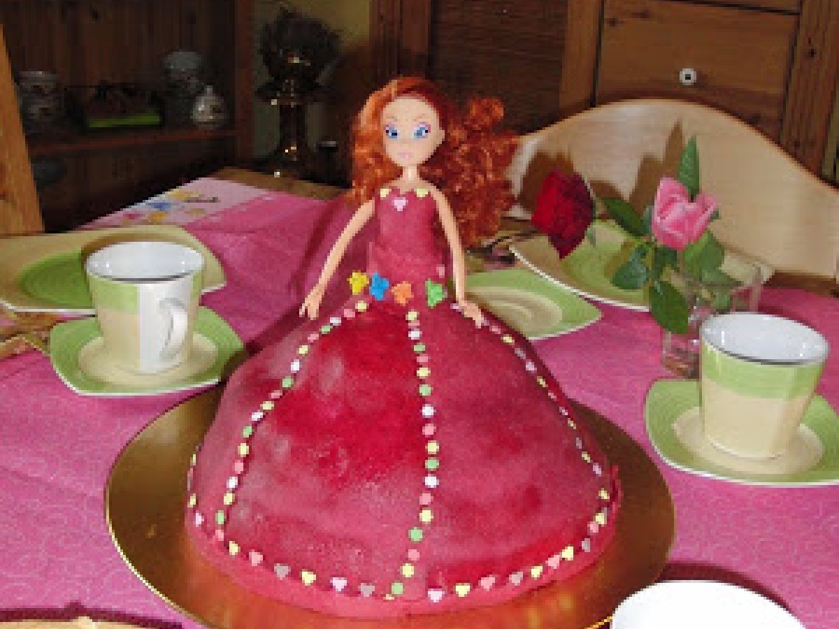 Tort barbie PrecedentulUrmătorul DesertFoarte ușor1 h 20 m Trimite unui prieten Printează pagina Adresează o întrebare autorului Postează o poză cu rețeta gătită de tine Ingrediente 10 2 blaturi de tort albe , ptr crema am optat pentru 200 ml. frisca, 200 g.mascarpone, 100 g.zahar pudra zahar vanilat si 400 g.capsuni plus gelatina ptr crema. Ptr cuvertura : 400 g.martipan plus colorant.