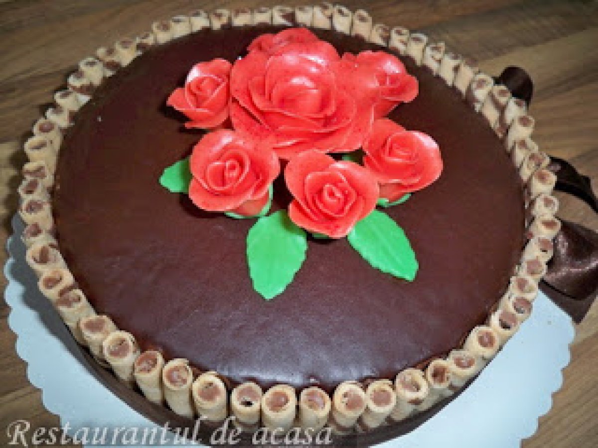 Tort ciocolatos PrecedentulUrmătorul DesertFoarte ușor50 min Trimite unui prieten Printează pagina Adresează o întrebare autorului Postează o poză cu rețeta gătită de tine Ingrediente 8 pt. blat : 6 oua , 200 g zahar , 2 linguri cacao , 3 linguri apa , 3 linguri ulei , 8 linguri faina , 1 lingurita praf de copt pt. crema: 200 ml frisca lichida , 4 linguri crema Nutella , 5 g gelatina pt. ornat: sticks Finetti , 1 plic glazura de ciocolata Dr.Oetker , plastelina de ciocolata