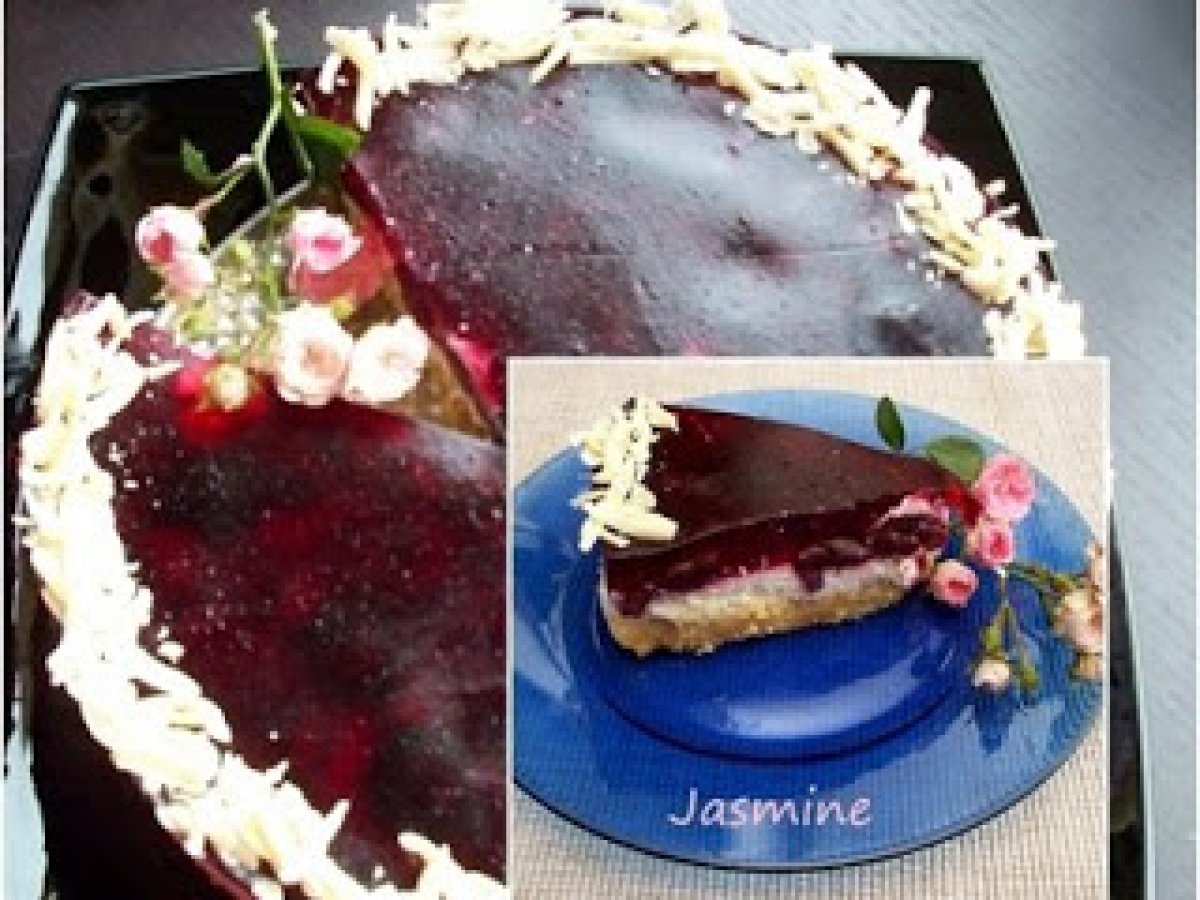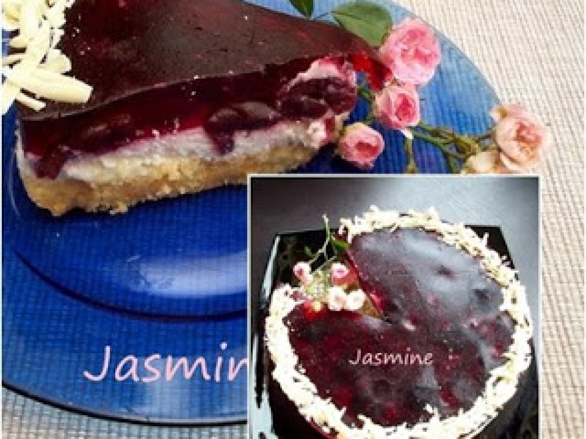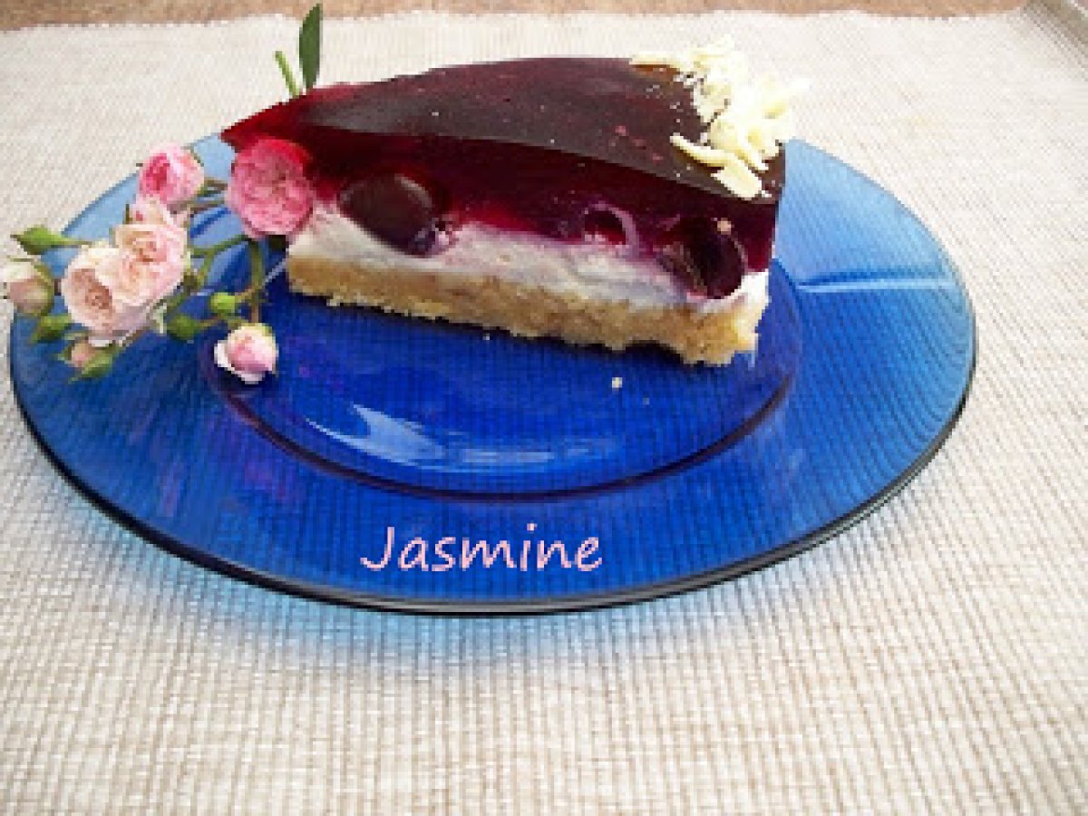 Tort cu branza dulce si cirese PrecedentulUrmătorul DesertFoarte ușor1 h 10 m Trimite unui prieten Printează pagina Adresează o întrebare autorului Postează o poză cu rețeta gătită de tine Ingrediente 6 Blat: 150 g unt topit si racit la temp. camerei 175 g biscuiti (eu am pus o parte biscuiti 2 parti piscoturi) Umplutura: 220 g branza de vaca 60 g zahar fin 2 plicuri zahar vanilinat (Dr Oetker) 3 linguri suc lamaie 250 g smantana dulce (de frisca) 2 plicuri intaritor de frisca 350 g cirese din compot 2 plicuri de gelatina rosie 500 ml suc de cirese ciocolata alba rasa