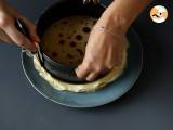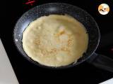 Alegeți o tigaie de clătite fără margini, vă puteți întoarce mai ușor clătitele folosind o spatulă. Pentru a face acest tort de clătite, vă recomandăm să folosiți o tigaie mică pentru a face cât mai multe clătite și a obține un tort mai înalt. Puneți cercul în tigaie, diametrele ar trebui să se potrivească.