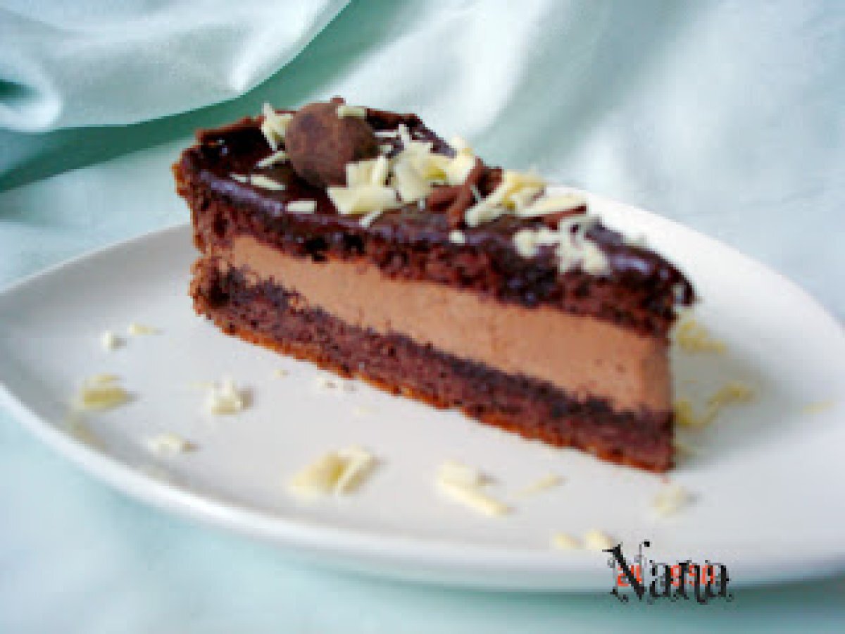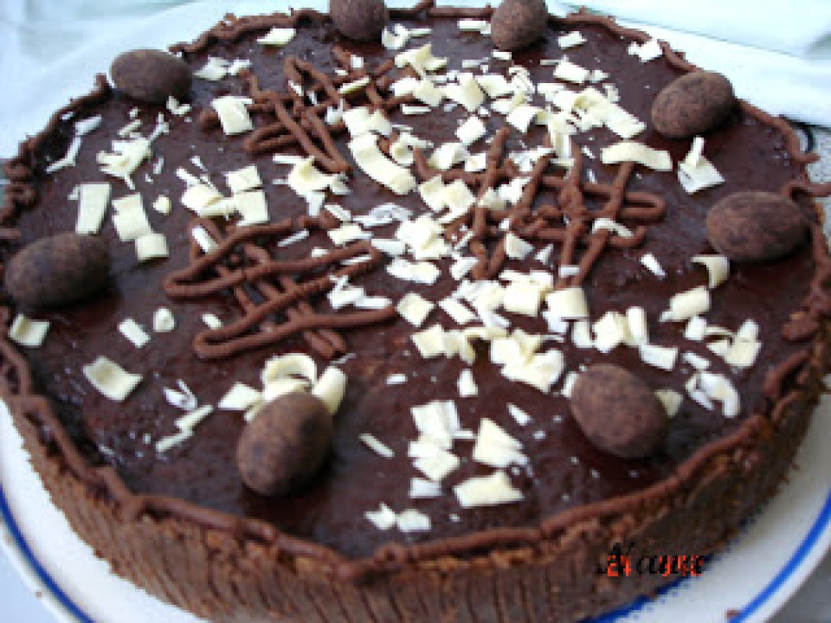 Tort cu crema de ciocolata PrecedentulUrmătorul DesertFoarte ușor1 h 10 m Trimite unui prieten Printează pagina Adresează o întrebare autorului Postează o poză cu rețeta gătită de tine Ingrediente 6 Ingrediente blat: 5 oua 50 g faina 20 g cacao 120 g zahar Ingrediente crema: 200 g ciocolata cu lapte 200 ml frisca 100 g unt 30 g zahar pudra 2 linguri crema de ciocolata nuttela Ingrediente sirop: 50 ml apa 30 g zahar 1 plic cafea capucino cu gust de ciocolata Pentru decor: un plic glazura de ciocolata Dr.Otker 8 bomboane pralinate 1 lingura ciocolata alba razuita