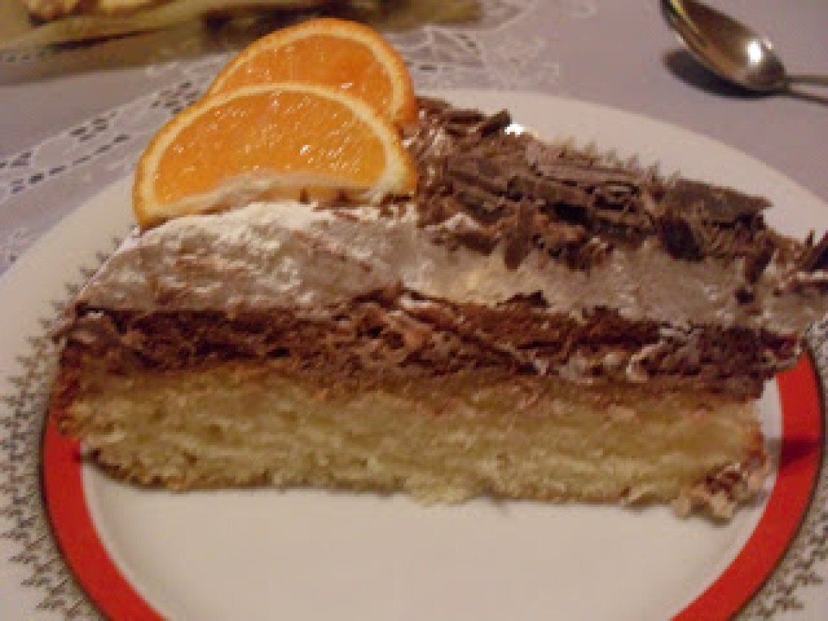 Tort cu crema de ciocolata si mandarine PrecedentulUrmătorul DesertFoarte ușor1 h 35 m Trimite unui prieten Printează pagina Adresează o întrebare autorului Postează o poză cu rețeta gătită de tine Ingrediente 10 Pt blat: 3 oua, 3 linguri de zahar, 3 linguri faina, 1/2 plic praf de copt dr oetker, 1 vanilie Pt crema: 1 plic crema pentru prajituri cu gust de ciocolata 250 ml lapte rece 4 linguri zahar pudra, 250 ml frisca lichida ,,el maestro,, 1 plic vanilie 1 plic intaritor de frisca Pt insiropat: 200 ml apa in care a topit 4 linguri de zahar 1/2 sticluta esenta migdale. Pt decor: 3 mandarine, ciocolata menaj