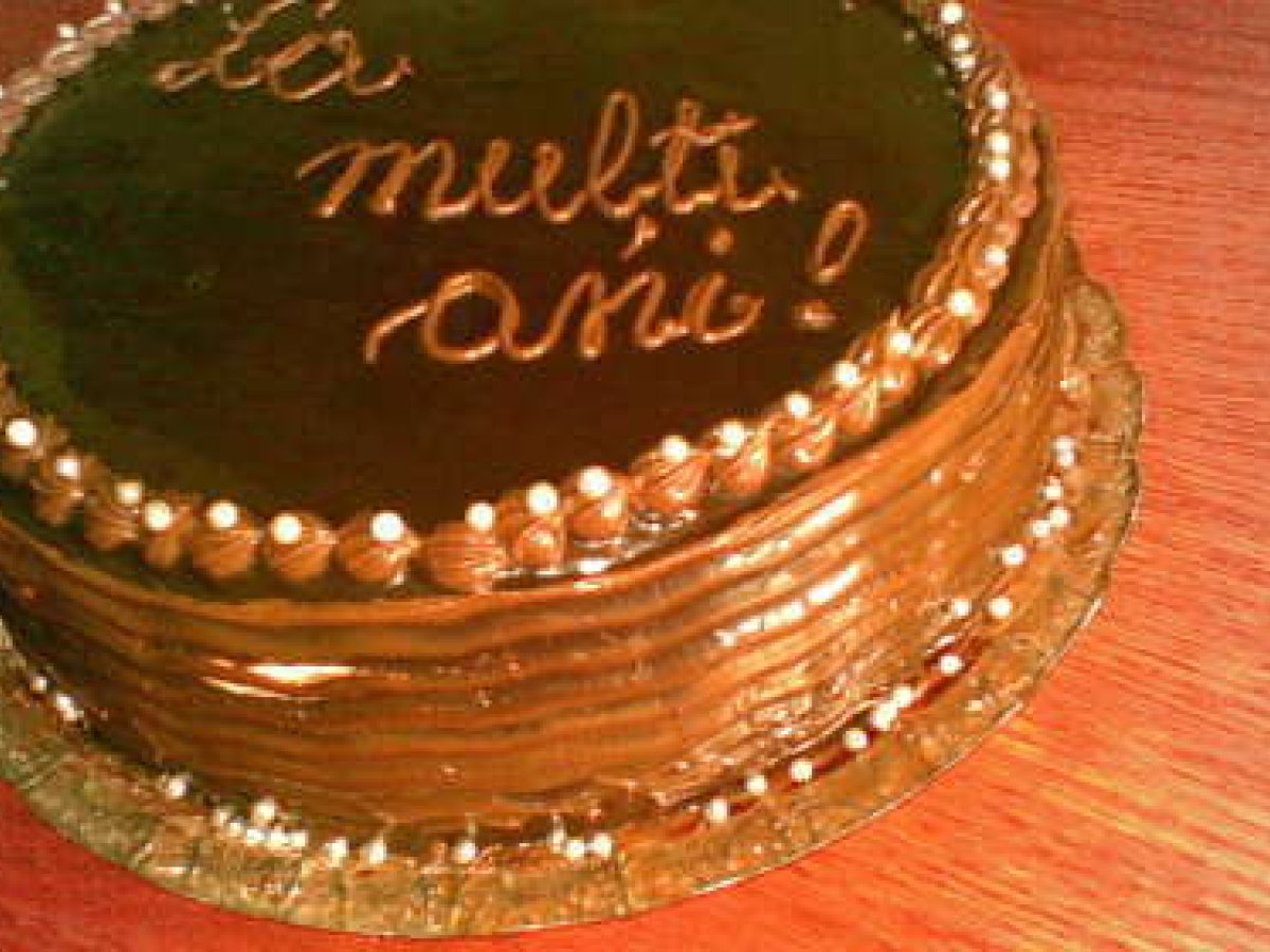 Tort cu doua creme de ciocolata PrecedentulUrmătorul DesertUșor1 h 30 m Trimite unui prieten Printează pagina Adresează o întrebare autorului Postează o poză cu rețeta gătită de tine Ingrediente 8 Ingrediente blat: * 9 oua * 225 gr. zahar * 1 plic si jumatate(60 gr.) budinca de cicolata * 30 gr. cacao * 150 gr. faina * 1 1/2 lingurita praf de copt Pentru mause de ciocolata: * 300 ml. frisca lichida * 300 gr. ciocolata cu lapte sau amaruie Ciocolata se rupe bucati,se adauga frisca lichida si se pun pe baie de aburi pina se topeste ciocolata.Se lasa la racit,iar dupa ce s-a racit se bate bine cu mixerul. Pentru crema de ciocolata alba: * 300 gr. ciocolata alba * 100 gr. unt nesarat * 9 linguri de frisca lichida Se pune ciocolata si frisca pe baie de aburi sa se topeasca,iar dupa aceea se lasa la racit.Untul se bate spuma si se pune ciocolata racita si se bate in continuare cu mixerul.Rezulta o crema fina de ciocolata. Pentru sirop: * 400 ml. apa * 200 gr. zahar * 2-3 plicuri capucino de ciocolata * rom Zaharul se face caramel,se pune apa si se lasa la fiert pina se topeste zaharul.Se ia de pe foc si se pune plicurile de capucino si rom dupa gust. Glazura: * 200 gr. ciocolata * 200 ml. frisca Se topesc pe baie de aburi,iar cind s-a racit se pune peste tort.