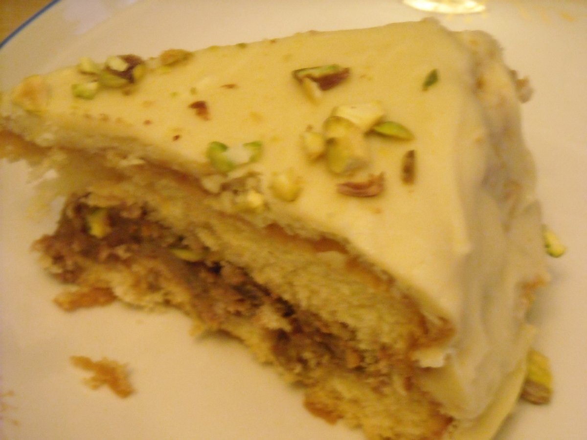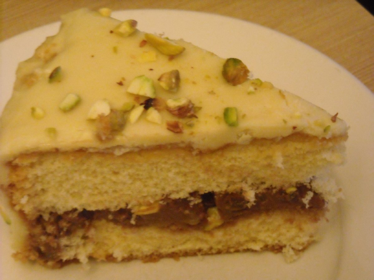 Tort cu fistic, ciocolata alba si neagra PrecedentulUrmătorul DesertFoarte ușor45 min Trimite unui prieten Printează pagina Adresează o întrebare autorului Postează o poză cu rețeta gătită de tine Ingrediente 8 Un blat cumparat (ingrediente naturale) Sirop: 200 ml apa, esenta de rom, 100 gr zahar Crema de ciocolata neagra: 3 tablete de ciocolata cu lapte, 50 gr smantana dulce, 100 gr stafide, putin rom sau coniac, fistic Crema de ciocolata alba: 3 ciocolate albe, 30 gr smantana