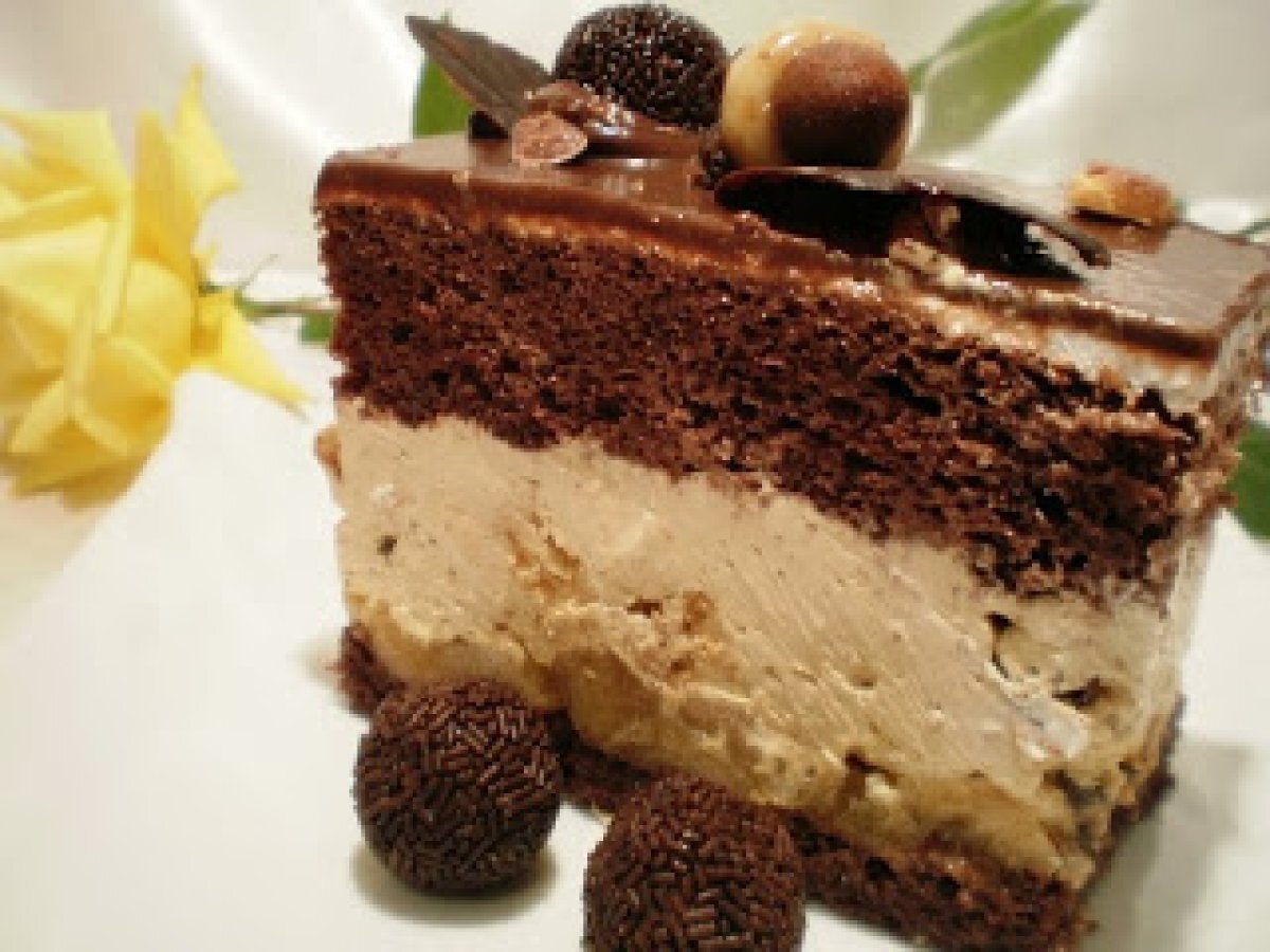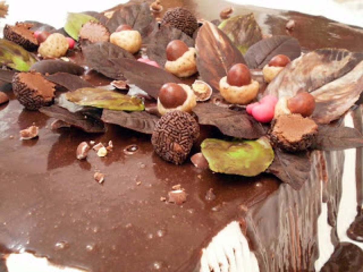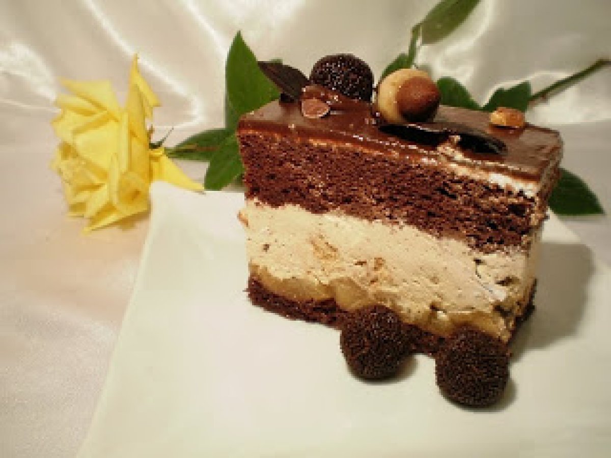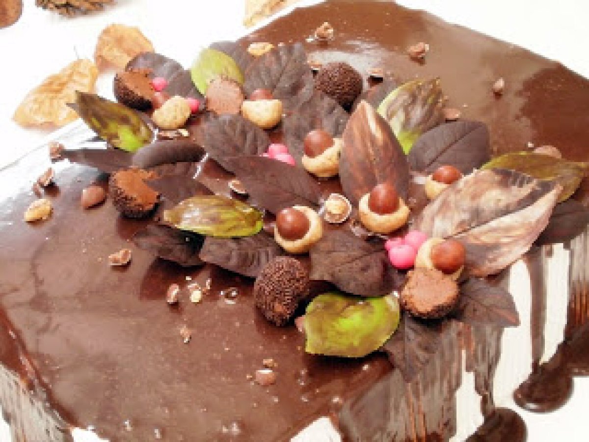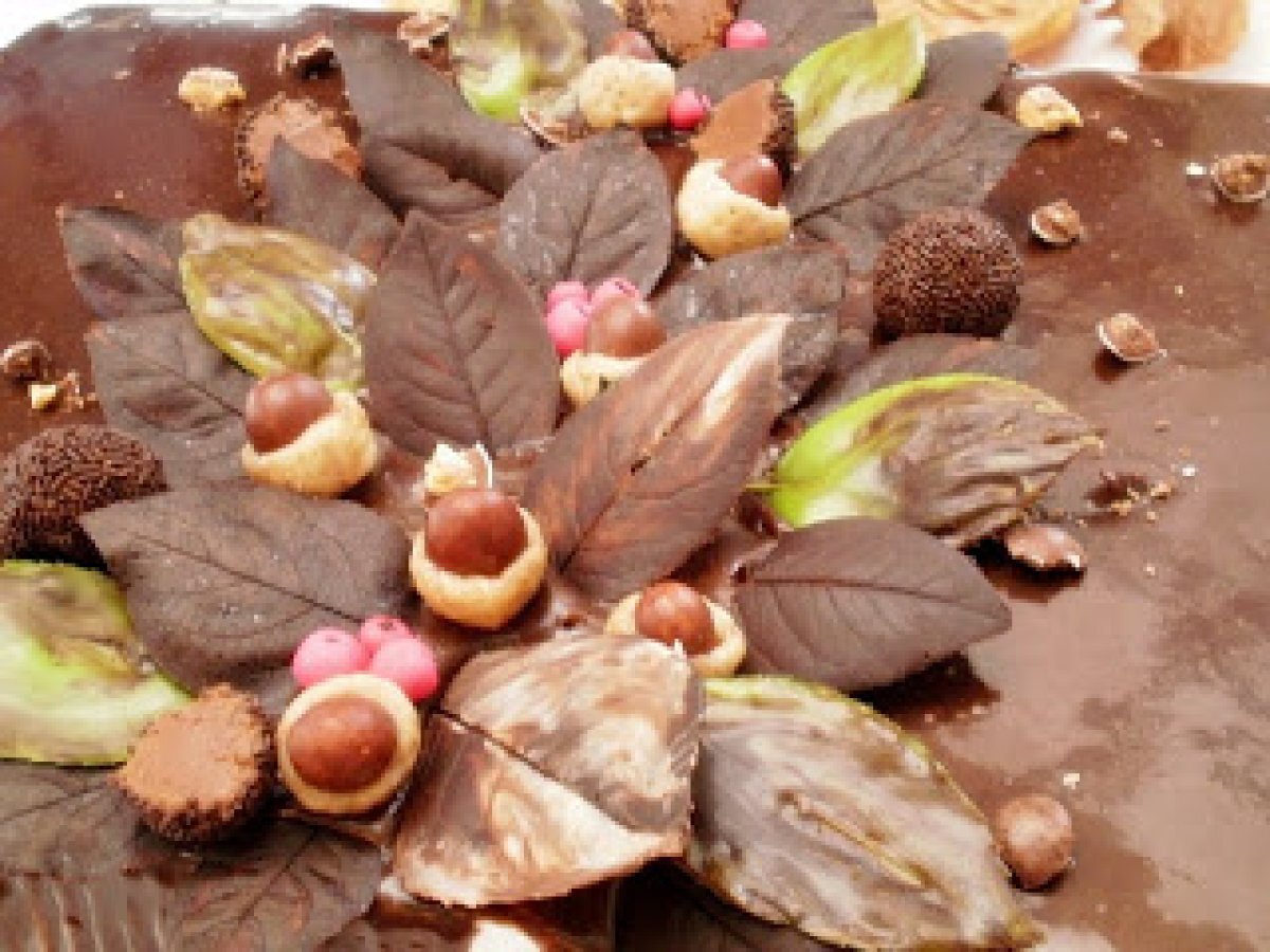 Tort cu fructe,ness si ciocolata PrecedentulUrmătorul DesertFoarte ușor55 min Trimite unui prieten Printează pagina Adresează o întrebare autorului Postează o poză cu rețeta gătită de tine Ingrediente 10 Blat: 9 oua 9 lg zahar 7 lg faina 2 lg cacao o esenta rom Stratul 1: 300 g zahar 5 mere 5 pere 1/2 gelatina esenta rom Crema : 400 ml frisca 3 lg ness 5 galbenusuri 250 g mascarpone 200 g zahar 100 g ciocolata amaruie esenta de vanilie 1/2 plic gelatina Glazura: 200 g ciocolata alba 200 g ciocolata amaruie 150 ml frisca 50 g unt Decor: frunze de ciocolata ghinde din martipan si bomboane cu alune bomboane trufe Sirop de rom: zahar apa esenta de rom