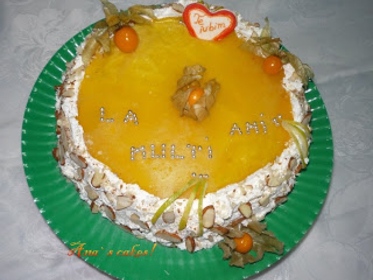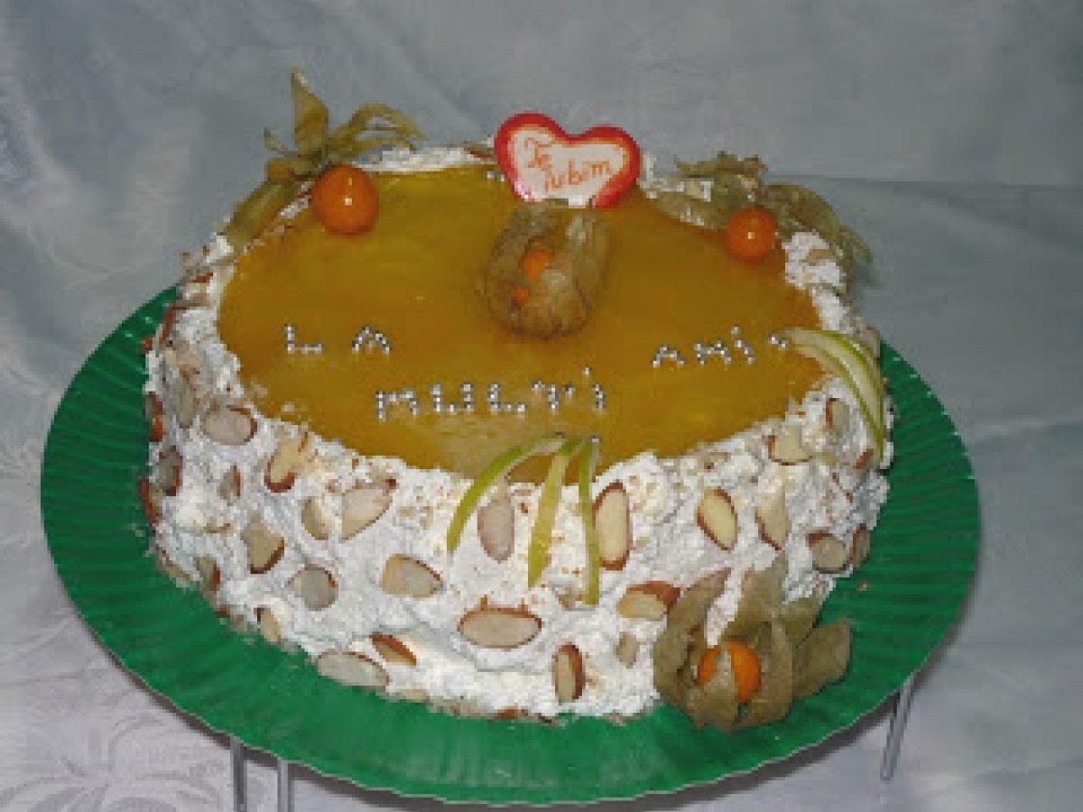 Tort cu fulgi de migdale PrecedentulUrmătorul DesertFoarte ușor55 min Trimite unui prieten Printează pagina Adresează o întrebare autorului Postează o poză cu rețeta gătită de tine Ingrediente 10 2 oua 125 g de zahar coaja si esenta de lamaie 50 g de faina 50 g de amidon 1 lingurita de praf de copt 1 lingura cu varf de fulgi de cocos suc natural de portocale, pentru insiropat blatul CREMA GANACHE: 250 g de ciocolata alba 300 ml de frisca lichida 100 g de alune de padure macinate grosier 1 foaie de gelatina CREMA DE LIMETTE: 350 g de iaurt gras 80 g de zahar coaja si sucul de la o limette 150 ml de frisca lichida 10 g de gelatina 5-6 bucati de biscuiti cu bucatele de ciocolata JELEU DE PORTOCALE: 220 ml suc natural de portocale 2 linguri de zahar 3 foi de geatina