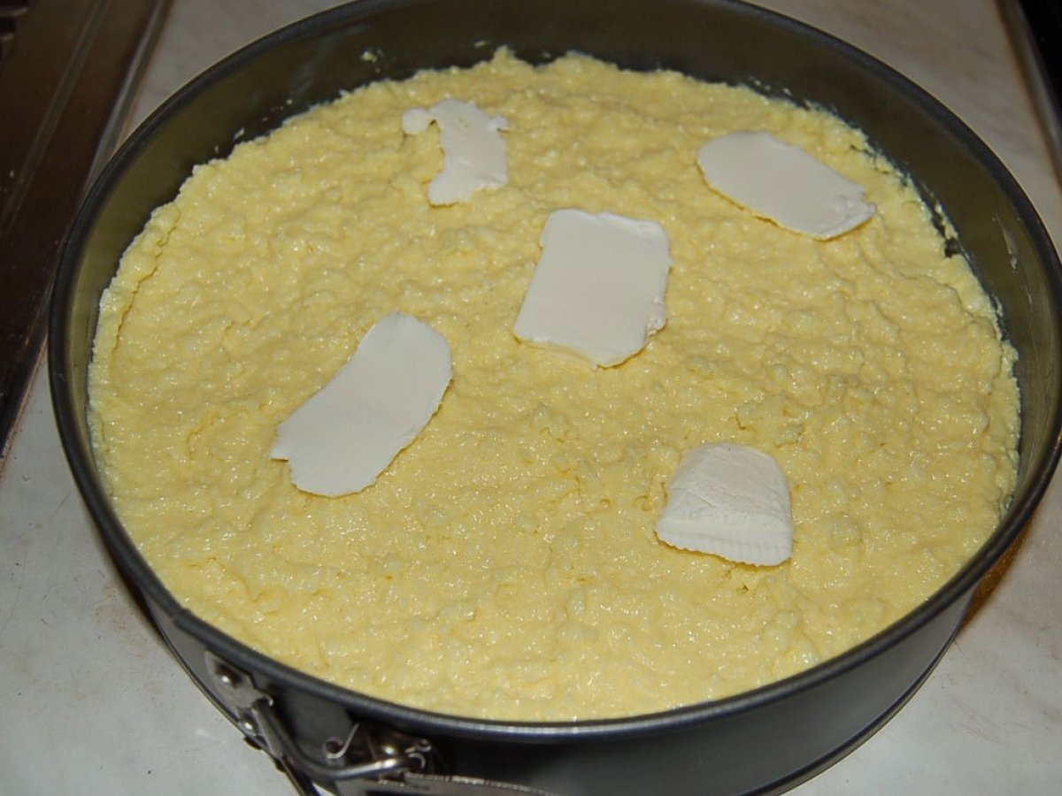 Tort cu gris PrecedentulUrmătorul DesertUșor1 h 30 m Trimite unui prieten Printează pagina Adresează o întrebare autorului Postează o poză cu rețeta gătită de tine gris, oua, lapte, zahar Ingrediente 6 250 grame gris 1 litru lapte 1 plic zahar vanilat Cateva bucati de unt 6 oua 200 grame zahar 400 grame branza ricotta Coaja de lamaie Coaja de portocala Coaja rasa de lamaie Un varf de sare
