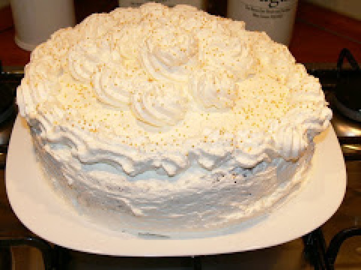 Tort cu mere si frisca PrecedentulUrmătorul DesertFoarte ușor1 oră Trimite unui prieten Printează pagina Adresează o întrebare autorului Postează o poză cu rețeta gătită de tine Ingrediente 4 300 g zahar 1,5 kg mere (depinde cat de mare este tava) 1 pahar mic cu apa esente scortisoara 8 oua 8 linguri apa 8 linguri ulei 300 g zahar 300 g faina
