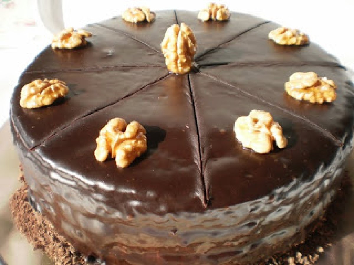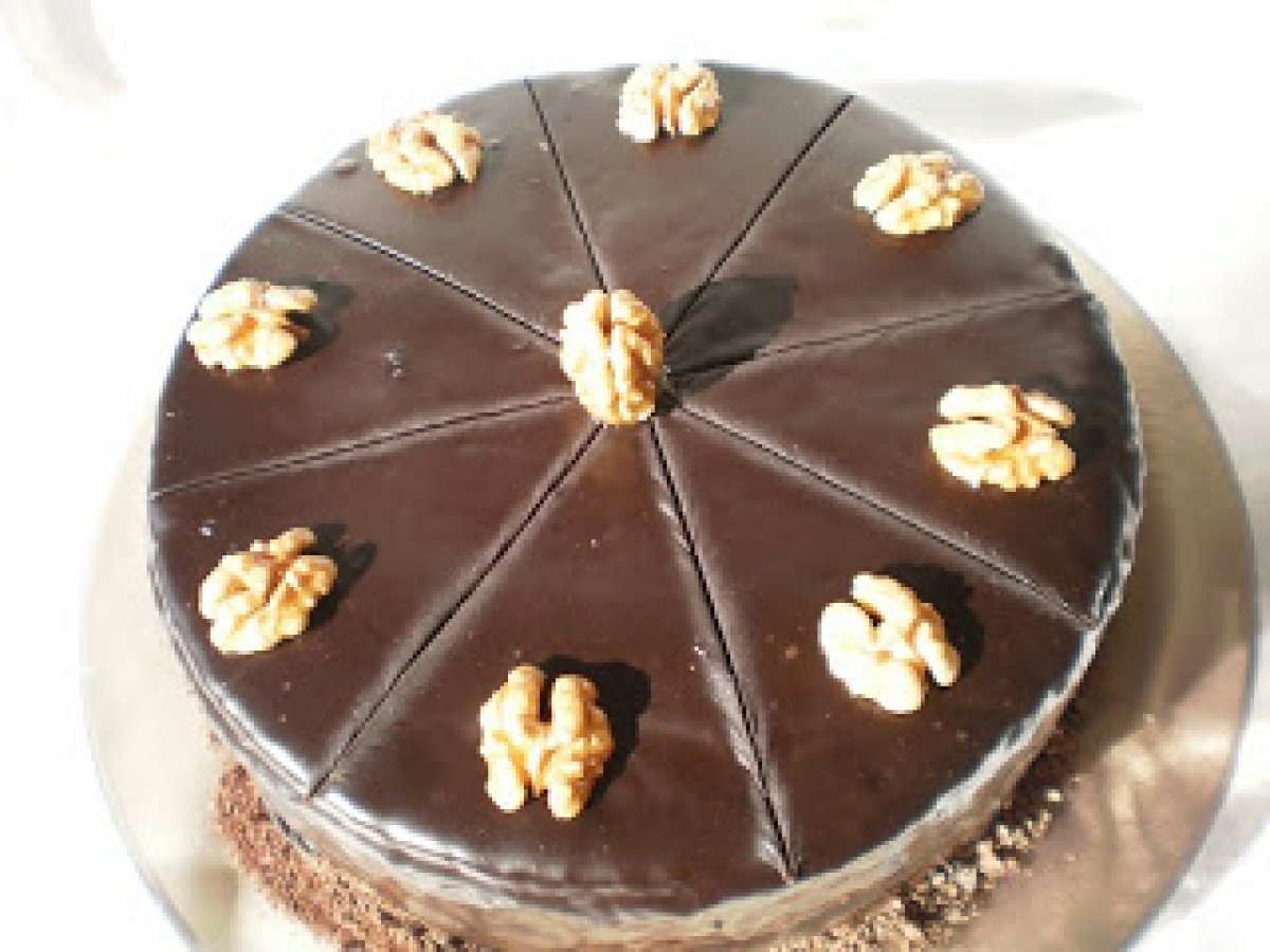 Tort cu nuca PrecedentulUrmătorul DesertFoarte ușor55 min Trimite unui prieten Printează pagina Adresează o întrebare autorului Postează o poză cu rețeta gătită de tine Ingrediente 8 Blat: 8 oua 8 lg zahar 4 lg apa 6 lg faina 2 lg cacao 4 lg nuca macinata esenta de rom Crema 1: 2 galbenusuri 100gr zahar 125 gr baranza mascarpone 100 gr nuca prajita macinata 200 ml frisca 2 lg ness 1/2 plic gelatina Crema 2: 2 galbenusuri 100 g zahar 125 g mascarpone 100 g ciocolata alba 200 ml frisca 1/2 plic gelatina esenta vanilie Glazura: 2 ciocolate albe 2 ciocolate negre 50 gr unt 150 ml frisca Sirop: 200 g zahar 350 ml apa esenta de rom Decor: miez de nuca glasat in zahar ars ciocolata rasa
