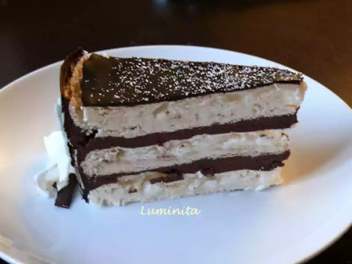 Tort de bezea cu ciocolata PrecedentulUrmătorul DesertFoarte ușor55 min532 Kcal Trimite unui prieten Printează pagina Adresează o întrebare autorului Postează o poză cu rețeta gătită de tine Ingrediente 10 Pentru foile de bezea avem nevoie de: 8 albusuri; 500 g zahar; o lingurita zeama de lamaie; un praf de sare. Pentru crema, vom folosi: 6 oua; 12 linguri de zahar; 50 g cacao; 250 g unt nesarat; 1-2 fiole esenta de rom.