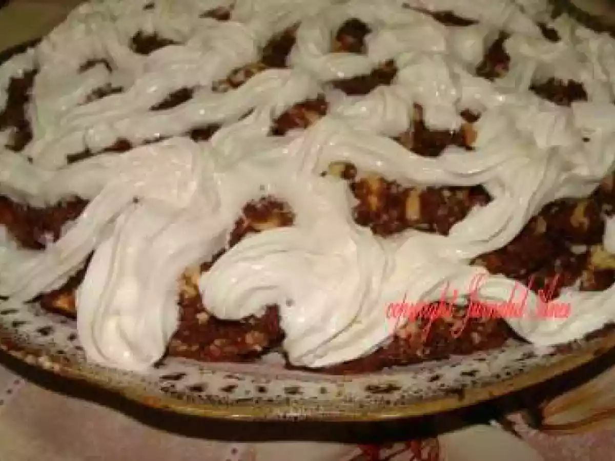 Tort de biscuiti PrecedentulUrmătorul DesertFoarte ușor20 min Trimite unui prieten Printează pagina Adresează o întrebare autorului Postează o poză cu rețeta gătită de tine Ingrediente 8 * un kg de biscuiti Fitness ; * fructoza- cateva lingurite; ( eu am pus 4 linguri si a iesit prea dulce, puneti 3 si va fi mai bun) * crema de ciocolata dietetica- o cutie mica; * cacao -2 lingurite; * lapte degresat- 400ml * frisca dietetica.