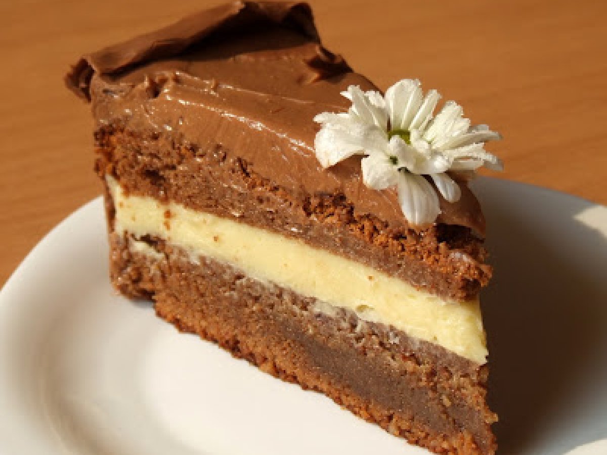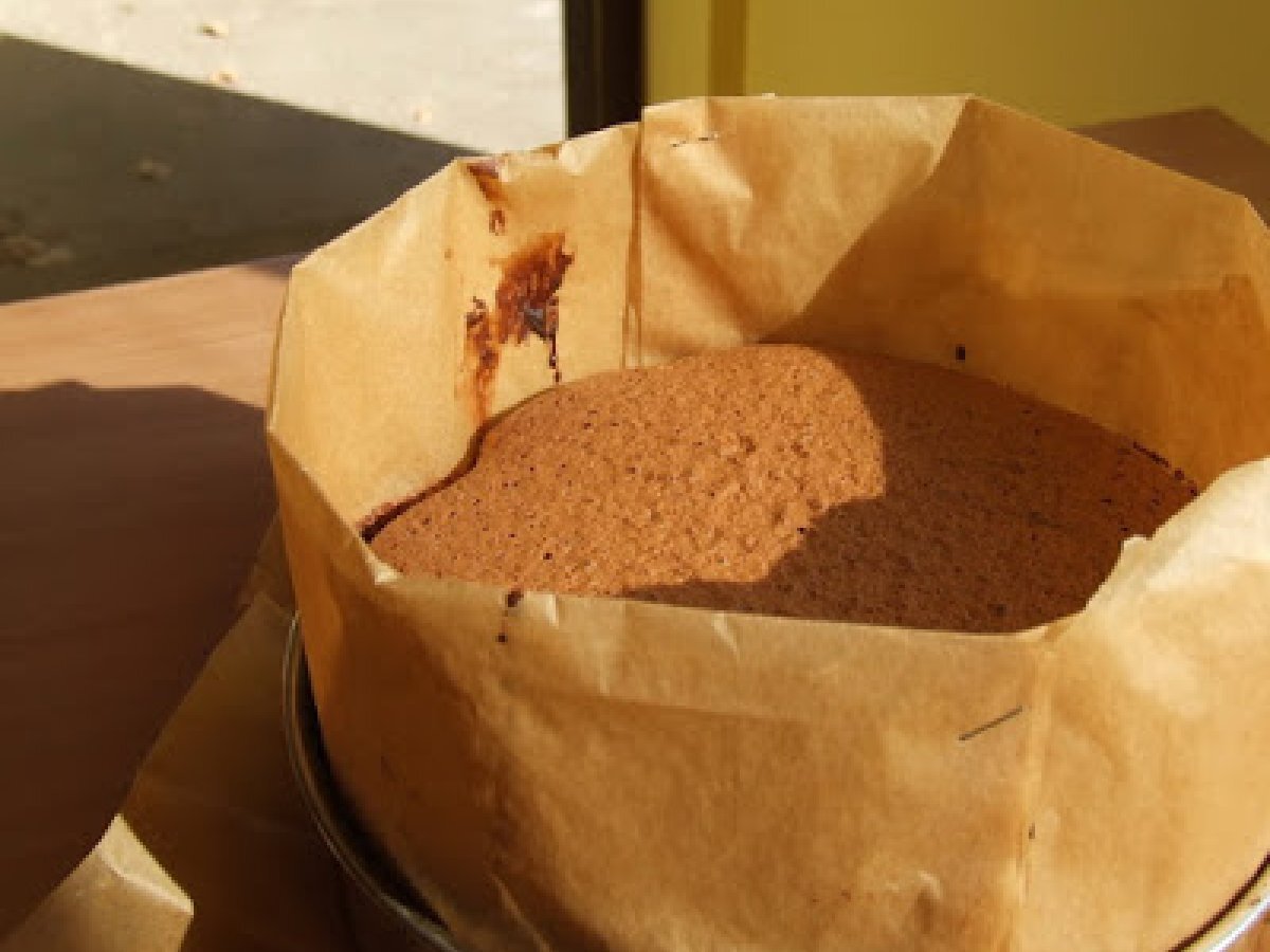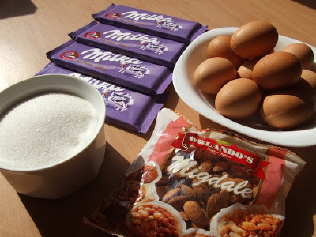 Tort de ciocolata, aniversar :) PrecedentulUrmătorul DesertFoarte ușor2 h 45 m Trimite unui prieten Printează pagina Adresează o întrebare autorului Postează o poză cu rețeta gătită de tine Ingrediente 6 Pentru blat: 350 g. ciocolata amaruie/lapte, rupta bucati 2 oua intregi 8 oua separate 350 g. zahar 200 g. migdale macinate Pentru crema: 200 g. ciocolata alba, rupta bucati 200 g. unt nesarat 6 linguri frisca lichida 50 ml. lichior "Grand Marnier" (puteti inlocui cu rom alb sau coniac) Pentru glazura: 200 g. ciocolata cu lapte, rupta bucati 250 g. unt nesarat 2 linguri de zahar pudra Pentru fasia de ciocolata: 200 g. ciocolata amaruie/lapte hartie pergament