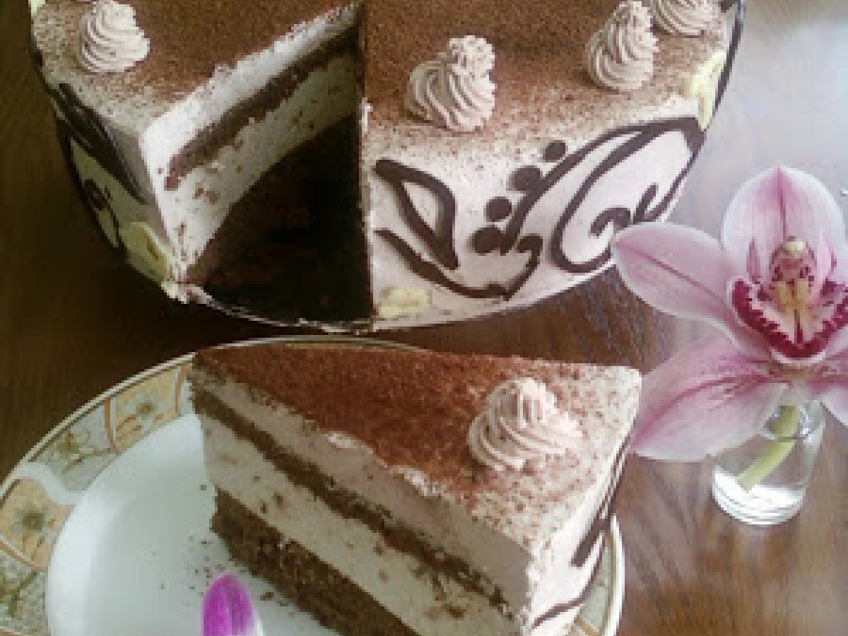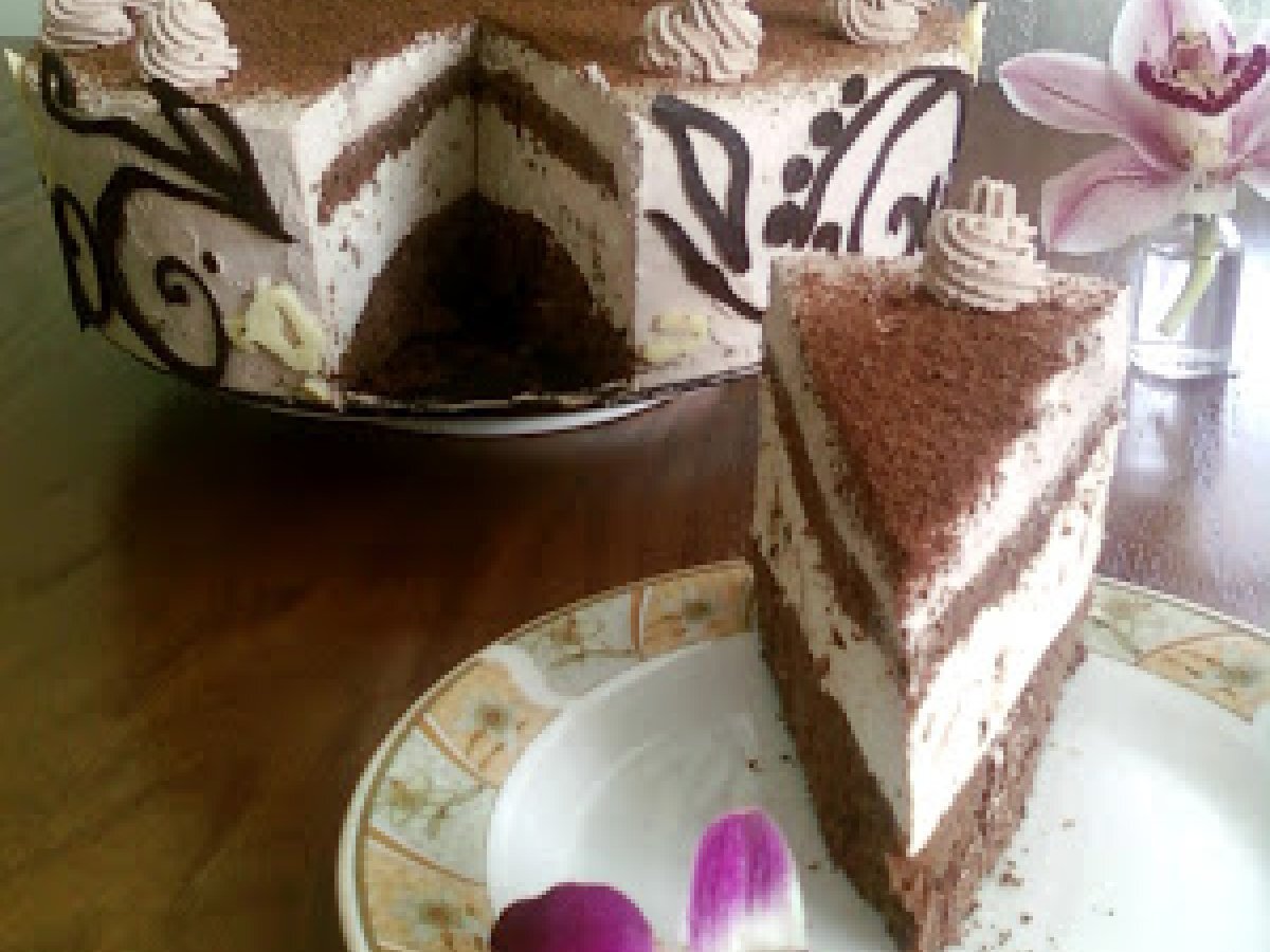 Tort de ciocolata cu mousse de banane PrecedentulUrmătorul DesertFoarte ușor50 min Trimite unui prieten Printează pagina Adresează o întrebare autorului Postează o poză cu rețeta gătită de tine Ingrediente 6 Pentru blat: 100 g ciocolata, 5 oua, 5 linguri de zahar, 2 linguri cacao, 1 plic praf de copt, 1 praf de sare, 8 linguri de faina, 200 ml lapte. Pentru crema: 2 banane, 3 galbenusuri, 200 ml lapte, 5 linguri de zahar, 250 ml frisca, 2 plicuri de gelatina, esenta de vanilie, 50 g ciocolata. Pentru glazura: 250 g crema de branza, 100 g unt, 150 g zahar pudra, 200 ml frisca, 1 plic intaritur de frisca, 2 linguri cacao; 100g ciocolata neagra si 50g ciocolata alba pentru ornamente, 2-3 linguri cacao