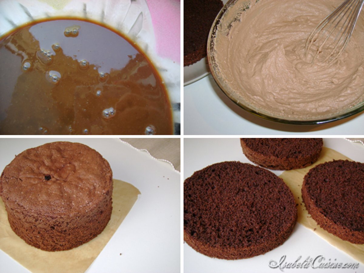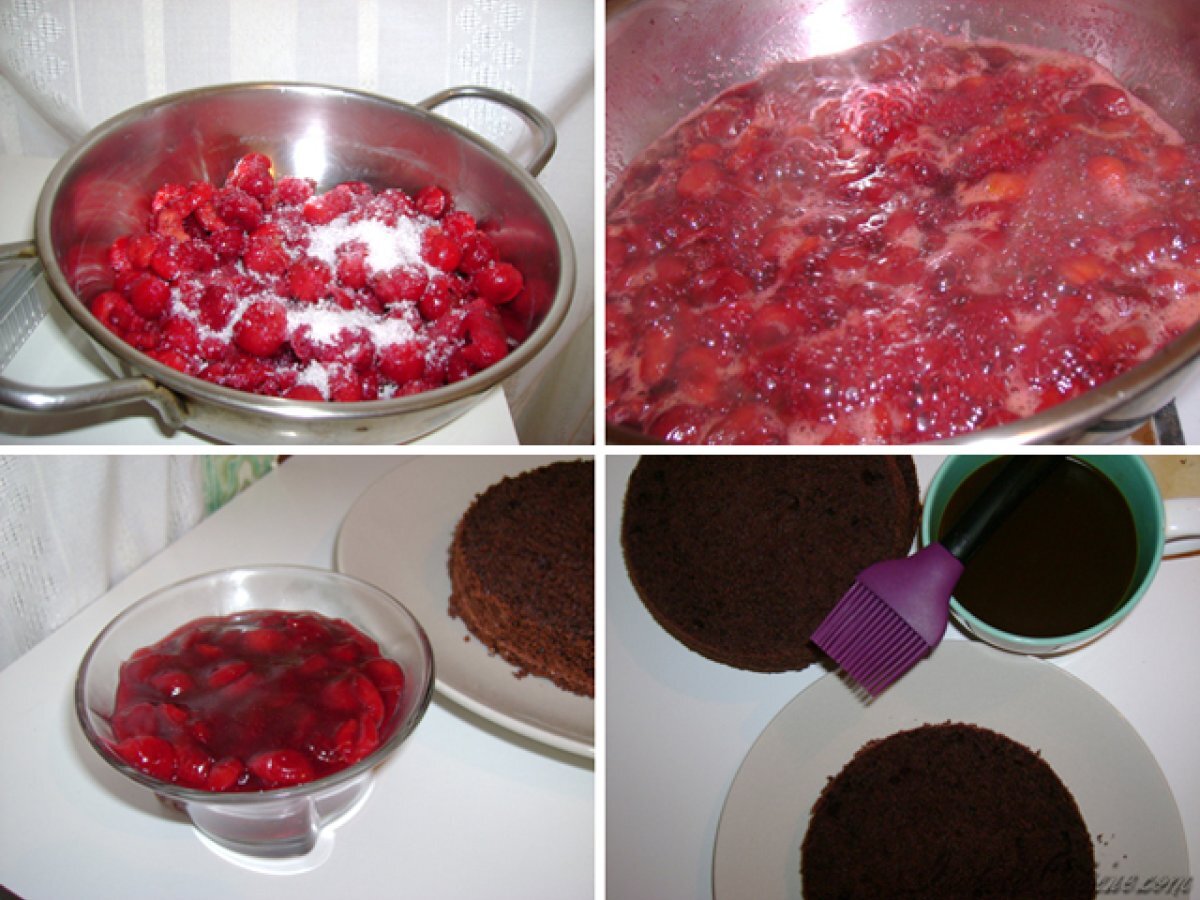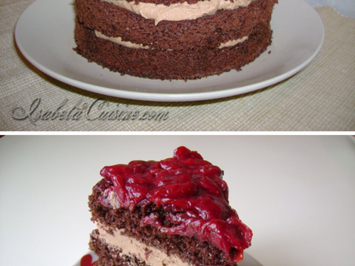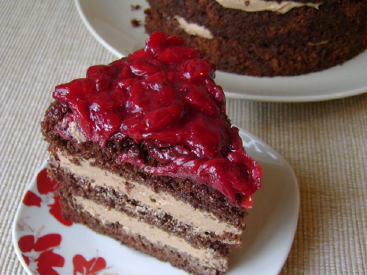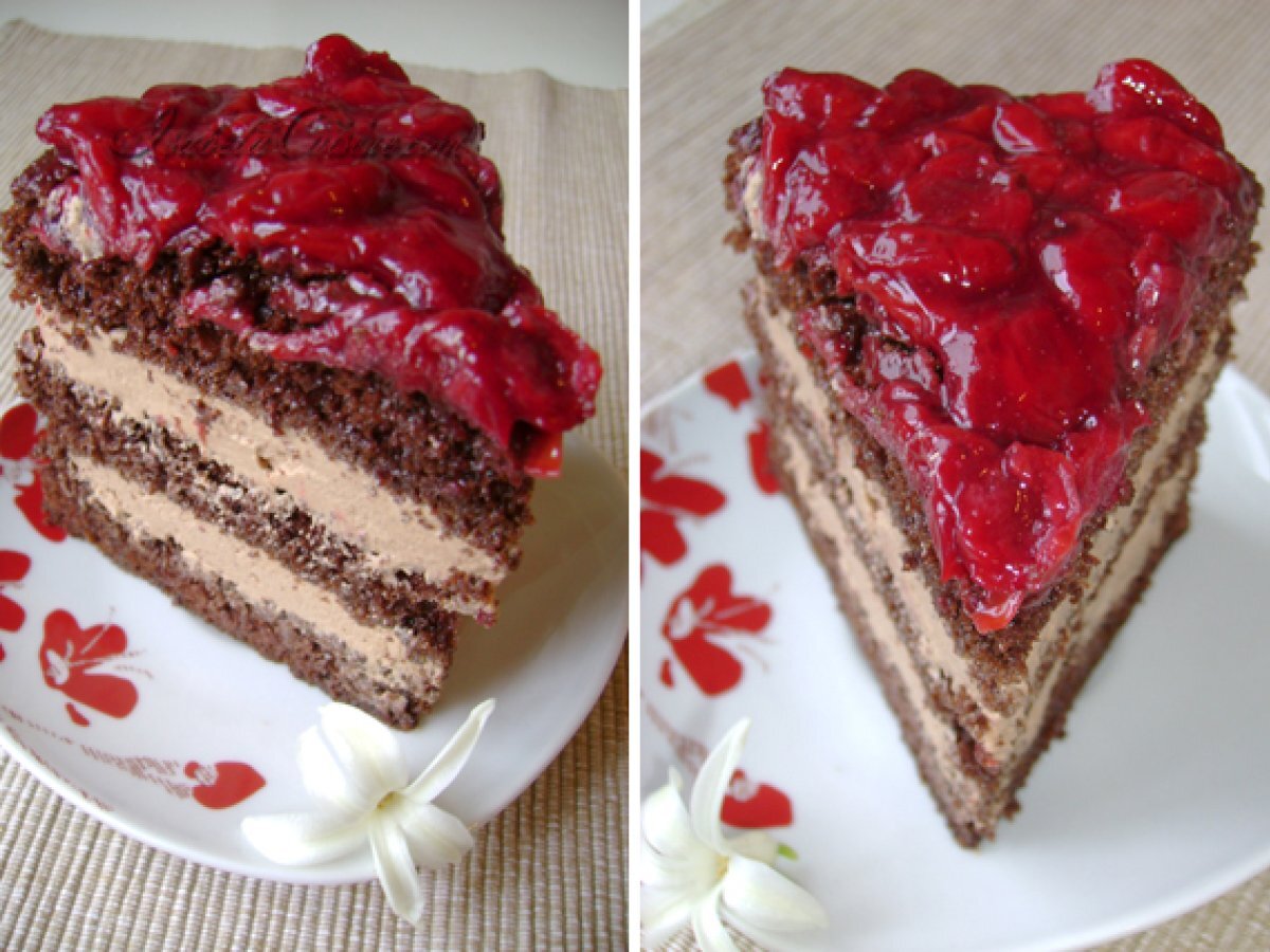 Tort de ciocolata cu tichie de visine PrecedentulUrmătorul DesertUșor1 h 40 m Trimite unui prieten Printează pagina Adresează o întrebare autorului Postează o poză cu rețeta gătită de tine Ingrediente 6 Blat de cacao: 3 oua 100 g zahar 80 g faina 20 g cacao 1 lingurita praf de copt Crema de ciocolata: 200 g ciocolata cu lapte 200 ml frisca lichida Sosul de visine: 250 g visine, cantarite fara samburi 50 g zahar 1 lingurita amidon (gustin) Pentru insirop blatul: o ceasca mare de cafea aromata cu putin rom