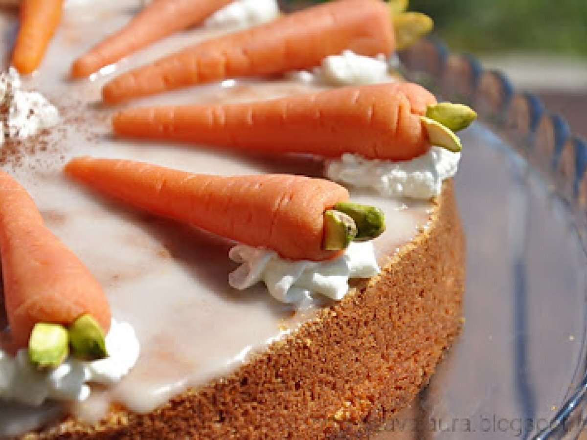 Tort de morcovi PrecedentulUrmătorul DesertFoarte ușor55 min Trimite unui prieten Printează pagina Adresează o întrebare autorului Postează o poză cu rețeta gătită de tine Ingrediente 8 Pentru blat: 360 g. morcovi proaspeti 4 oua 1 praf de sare 180 g. zahar 4 linguri zeama de lamaie 200 g. alune/nuci/migdale macinate 80 g. faina 1 praf de cardamom/scortisoara (optional) 2 lingurite praf de copt 50-70 g. pentru uns tava pesmet Pentru ornat: 1 plic zahar pudra 4-5 linguri suc de portocale/lamaie, proaspat stors 200 g. martipan colorant rosu si galben, lichid o punguta cu fistic