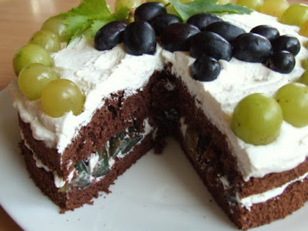 Tort de struguri cu frisca PrecedentulUrmătorul DesertFoarte ușor1 h 20 m Trimite unui prieten Printează pagina Adresează o întrebare autorului Postează o poză cu rețeta gătită de tine Ingrediente 4 500 g. struguri albi si negri 4 oua 150 g. zahar 125 g. faina 25 g. cacao 1 lingurita scortisoara macinata 1 lingurita rasa praf de copt 500 ml. frisca lichida 1 plic intaritor de frisca (optional) 75 g. zahar pudra