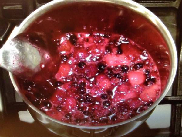 Puneti fructele intr-o craticioara impreuna cu zeama de lamaie si zaharul.Puneti pe aragaz la foc potrivit si dupa ce a dat primul clocot lasati sa fiarba un minut apoi opriti focul.Separat pregatiti gelatina.Puneti cele doua foi de gelatina in apa rece.Dupa 5 minute scoateti gelatina din apa rece(o stoarceti in mana ca sa nu aiba apa)si o puneti pe baie de aburi impreuna cu lichiorul amestecand pana se topeste.Gelatina topita se adauga peste fructele fierte care trebuie sa nu fie fierbinti ci doar calde,amestecati si apoi turnati aceasta glazura deasupra tortului.Bagati din nou tortul in frigider pentru cel putin 5 ore de data aceasta.