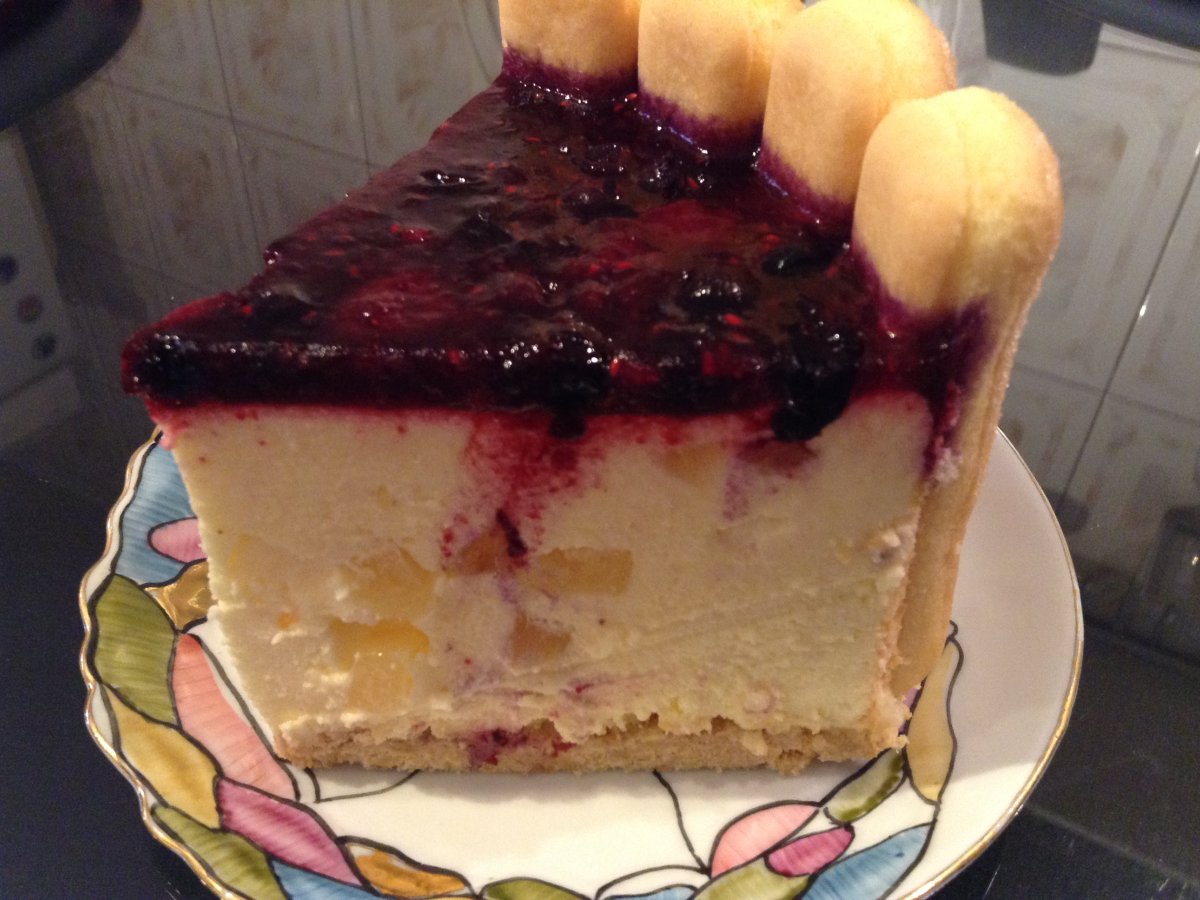 Sa stiti ca nu este greu de facut si daca urmati pasii corect o sa faceti un tort minunat.Combinatia dintre crema dulce de vanilie si glazura de fructe usor acrisoara da un gust deosebit acestui tort.Sper sa va placa si dvs asa cum ne place noua.