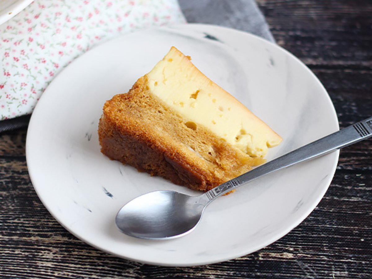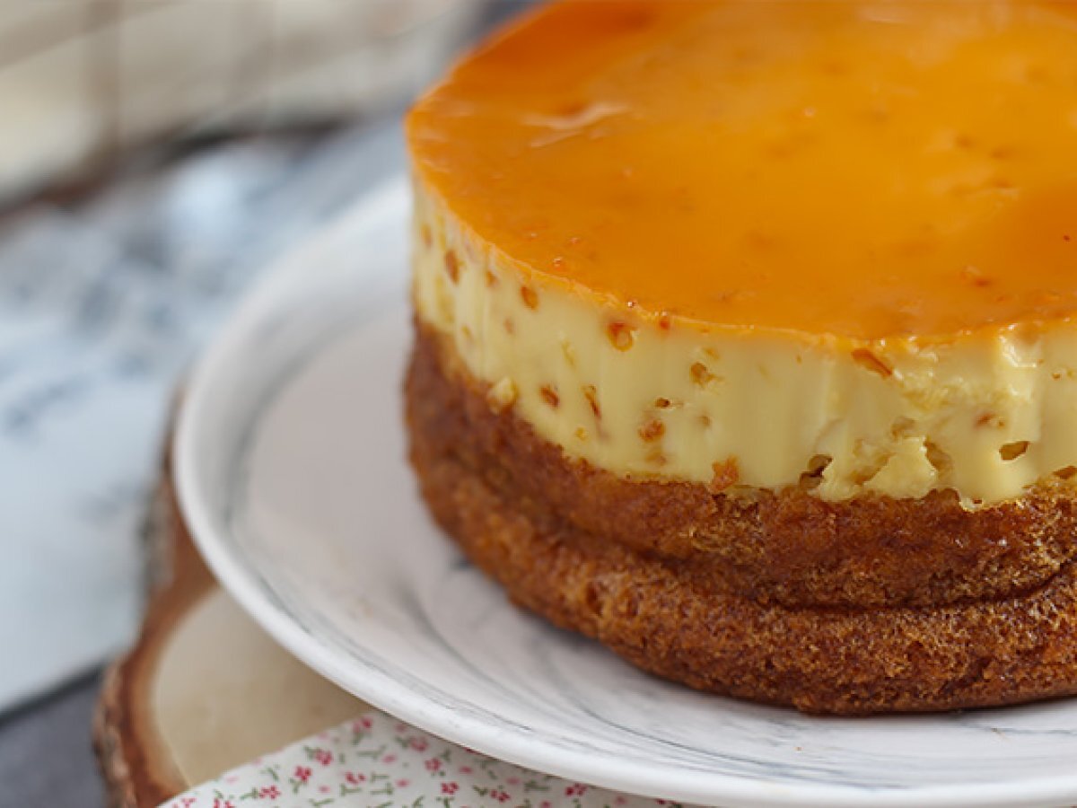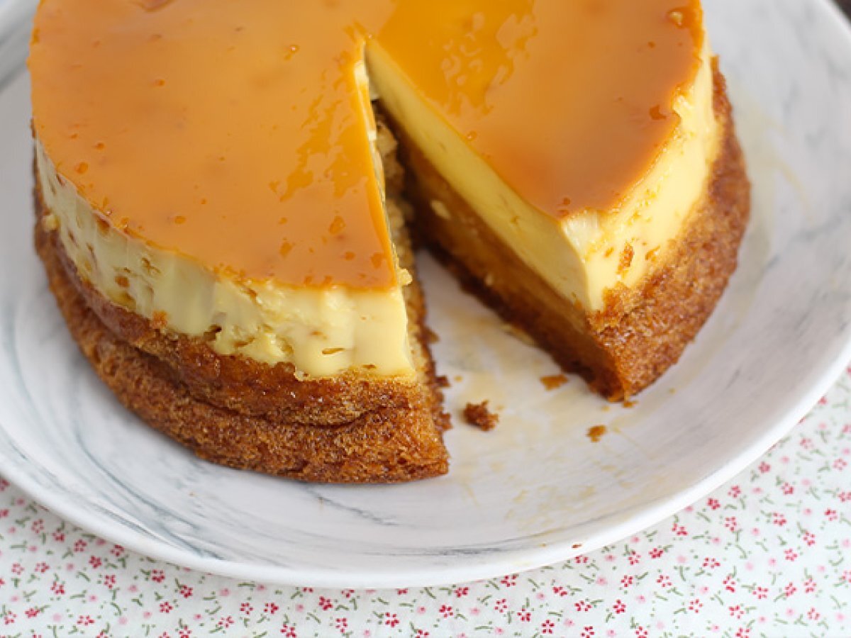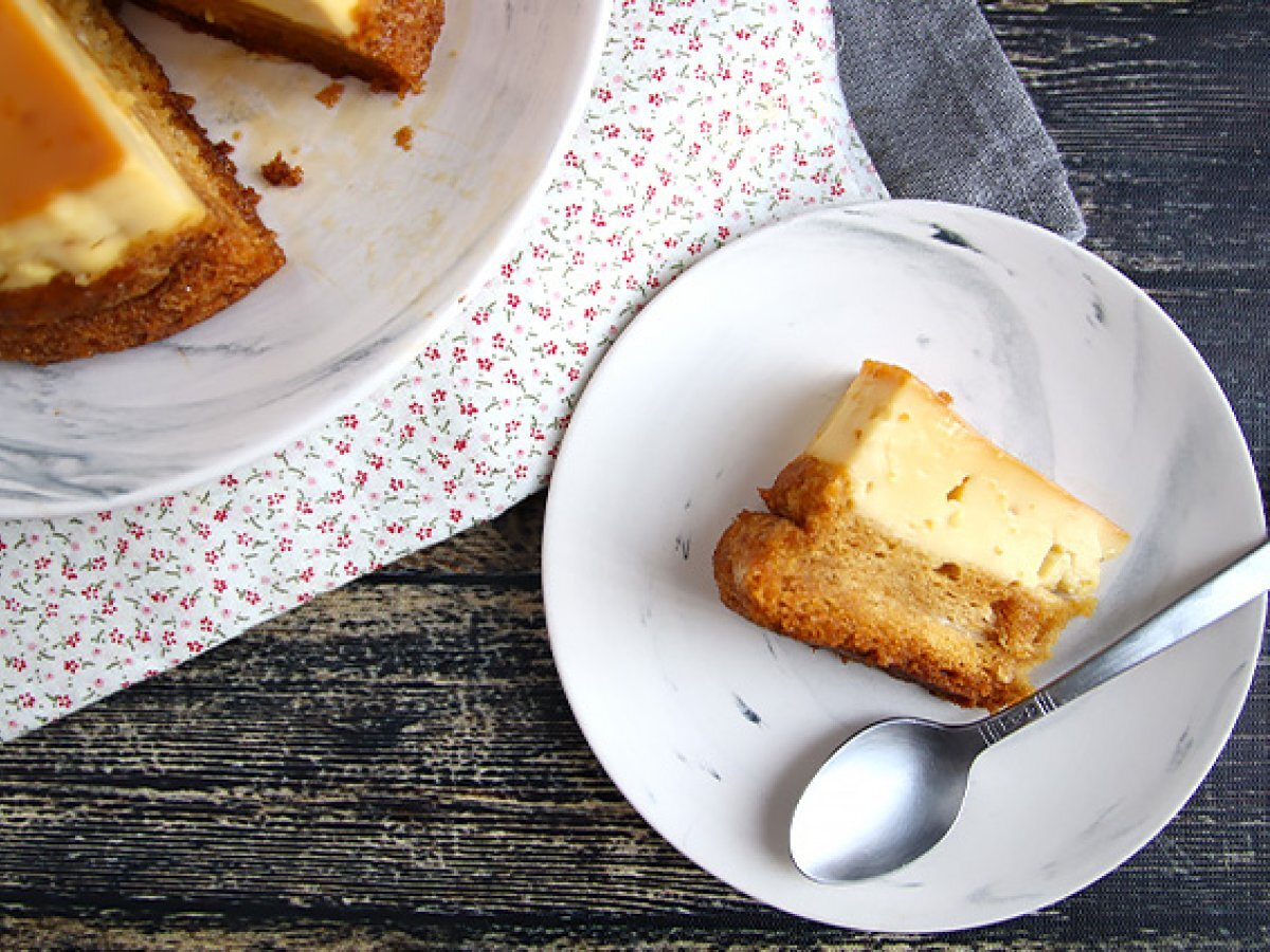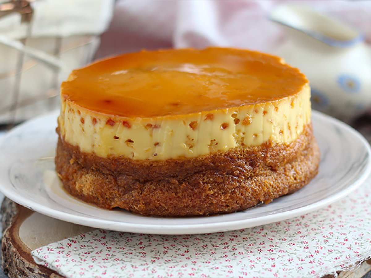 Va garantam ca nu veti fi dezamagiti de desert - tort flan cu vanilie! Un desert fabulos format din doua straturi: un flan si un blat. Surpriza?