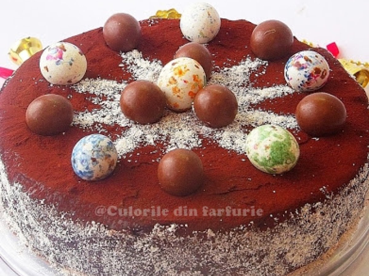Tort mascota PrecedentulUrmătorul DesertFoarte ușor55 min Trimite unui prieten Printează pagina Adresează o întrebare autorului Postează o poză cu rețeta gătită de tine Ingrediente 8 300 g unt 100 g cacao 6 oua 12 linguri zahar 2 linguri rom 2 linguri zahar vanilat 100 g nuci 100 g coaja de portocala zaharisita 150 g de visine din visinata Pentru blat: 100 g ciocolata 80 g margarina 80 g zahar 2 oua, 2-3 linguri cu faina esenta de rom. Decor: 100-150 g ciocolata pentru glazura 100 g nuca de cocos 100 g frisca, figurine din zahar
