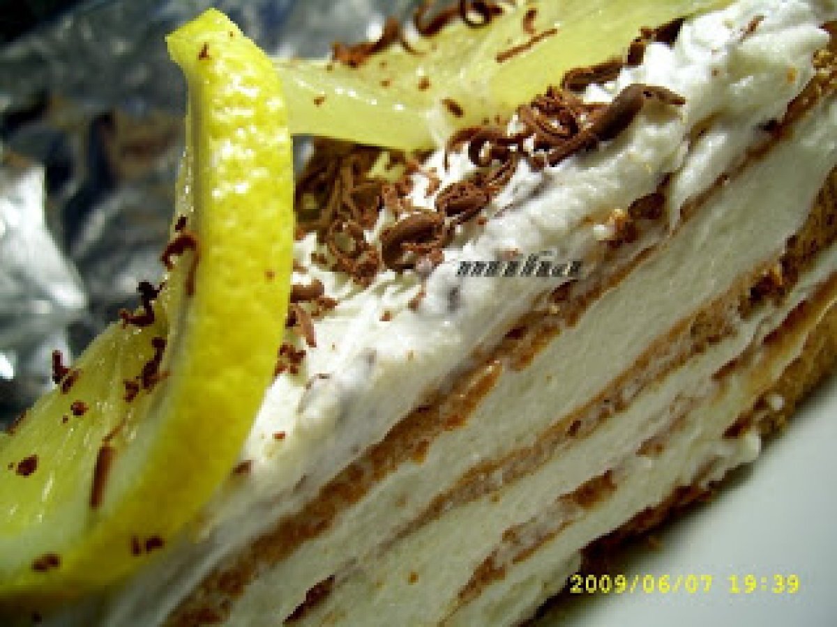 Tort merengue cu crema de lamaie PrecedentulUrmătorul DesertFoarte ușor1 h 5 m Trimite unui prieten Printează pagina Adresează o întrebare autorului Postează o poză cu rețeta gătită de tine Ingrediente 4 250 ml lapte 200 g unt 200 g zahar 50 g faina 2 lamai 150 ml frisca felii de lamaie ciocolata rasa